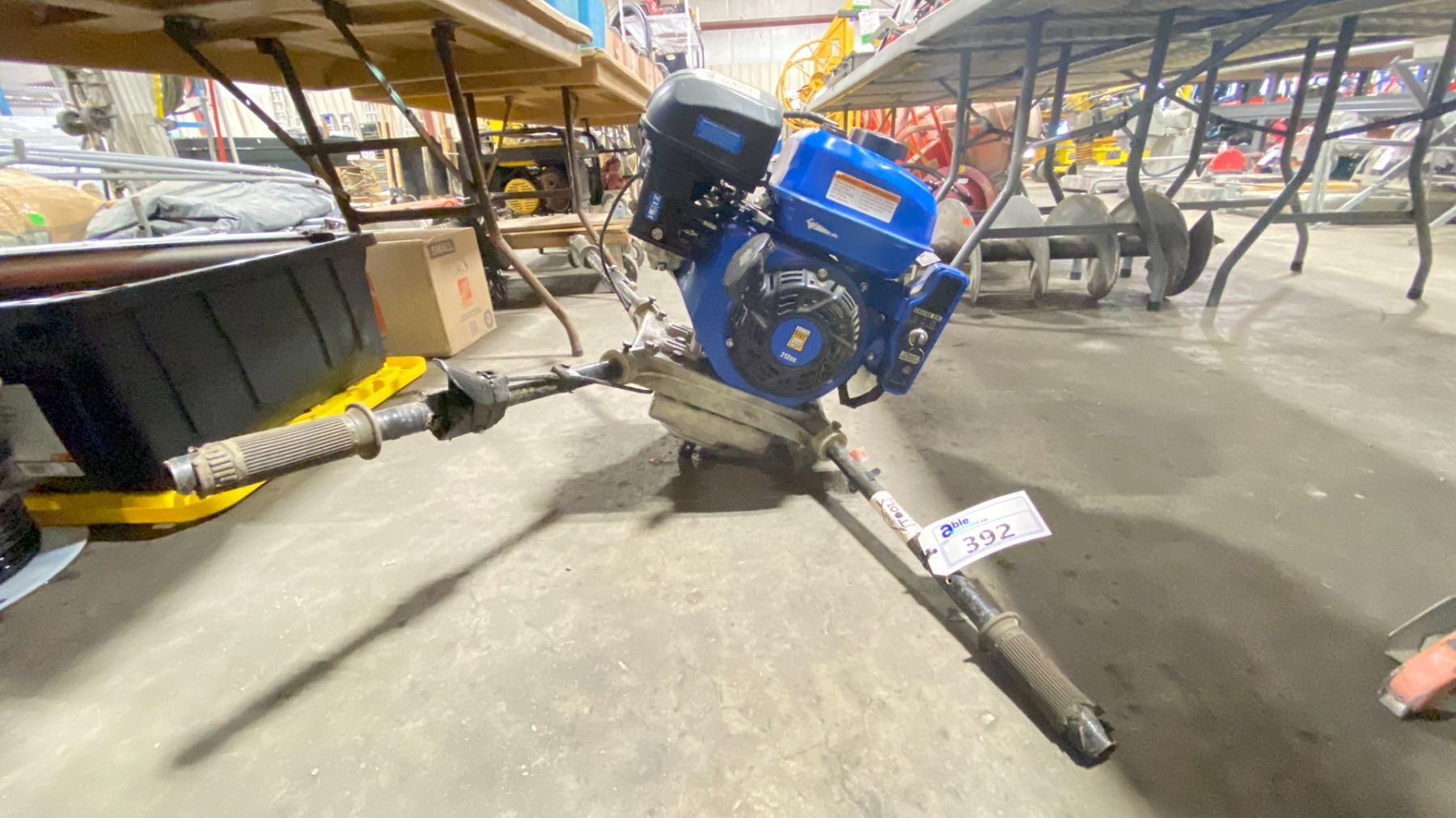 2 MAN GROUND HOG AUGER DRIVER MACHINE, POWERFIST 212CC ENGINE & HEAVY DUTY AUGER ATTACHMENT APPROX 12" DIAMETER, 38" L