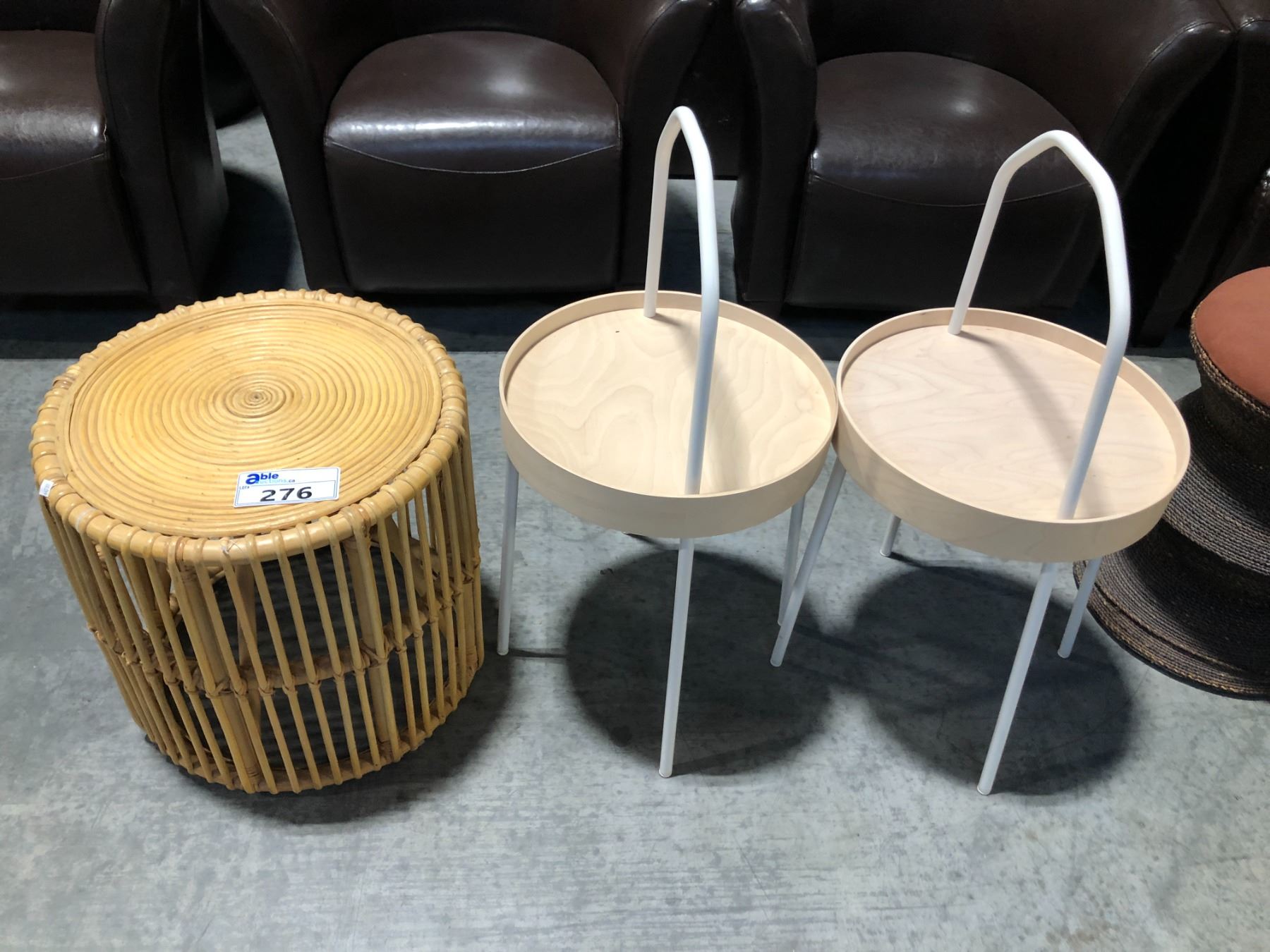 2 MAPLE ACCENT TABLES AND A BAMBOO SIDE TABLE