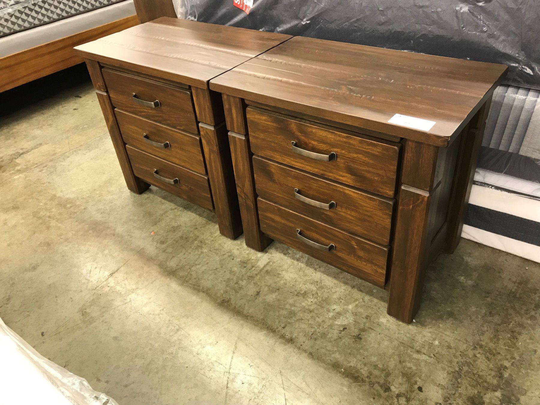 2 MATCHING SOLID PINE 3 DRAWER NIGHT STANDS