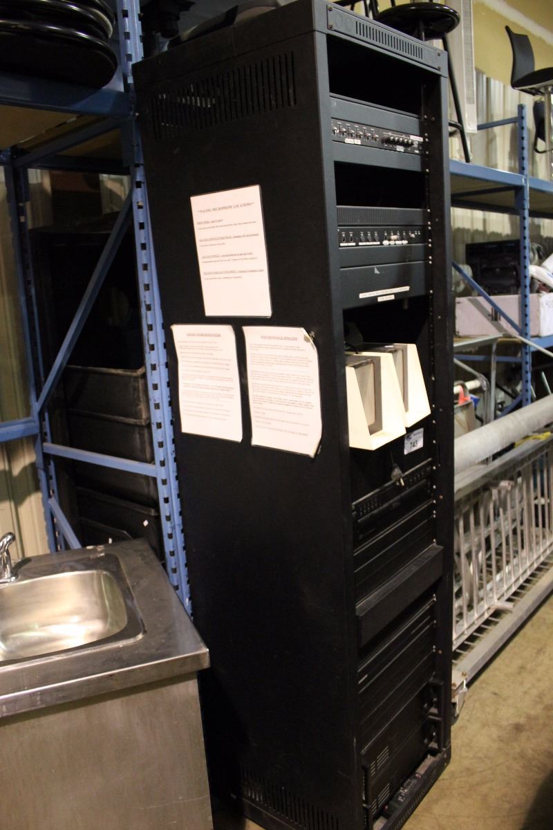 2 METAL MOBILE SPECIAL EVENT CARTS WITH CONTENTS & A/V RACK