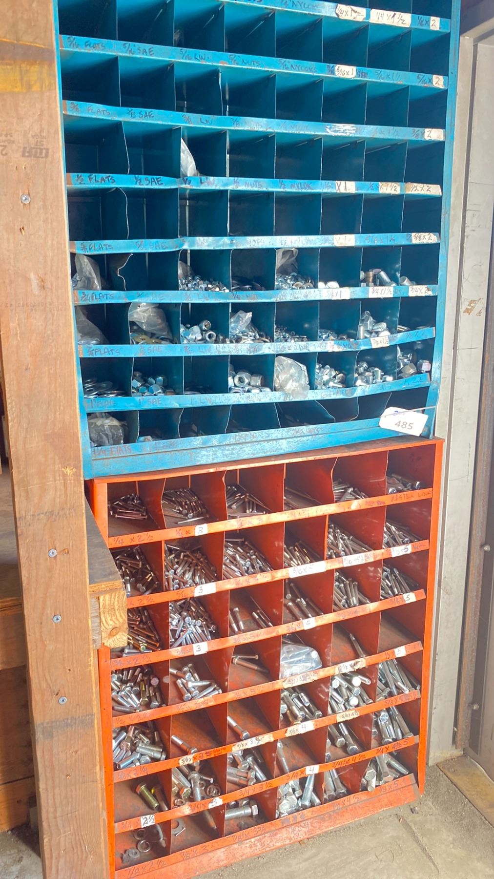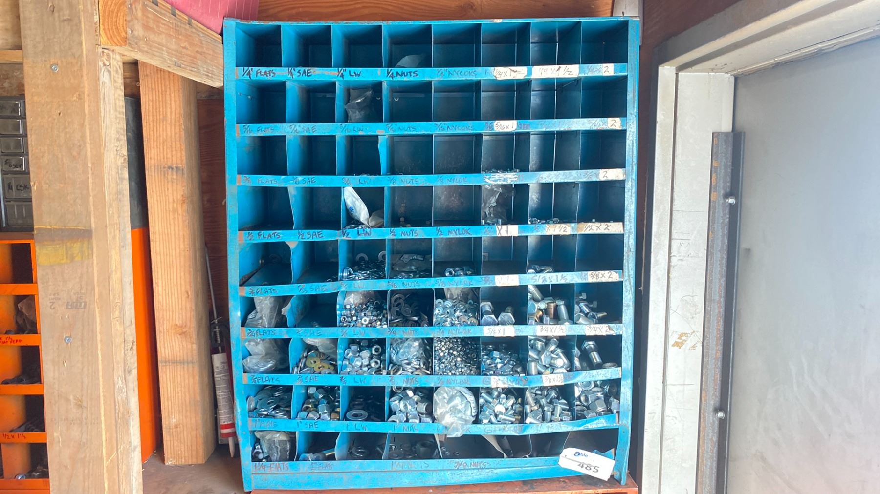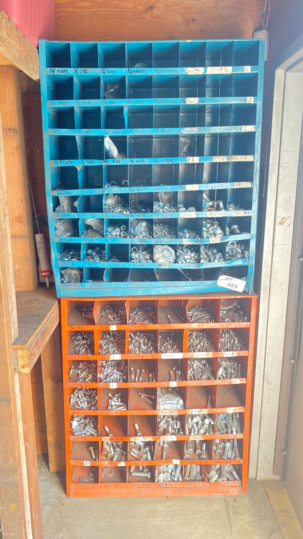 2 METAL PIGEON HOLE PARTS ORGANIZERS WITH CONTENTS - NUTS, BOLTS & WASHERS