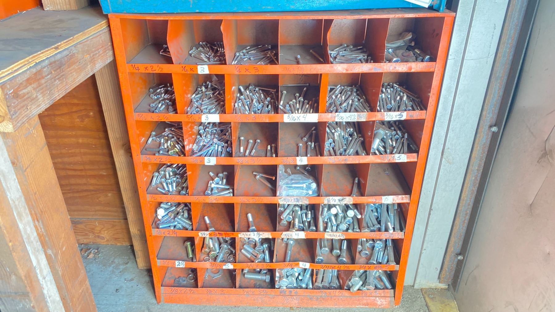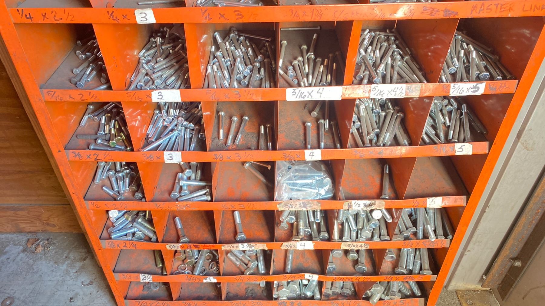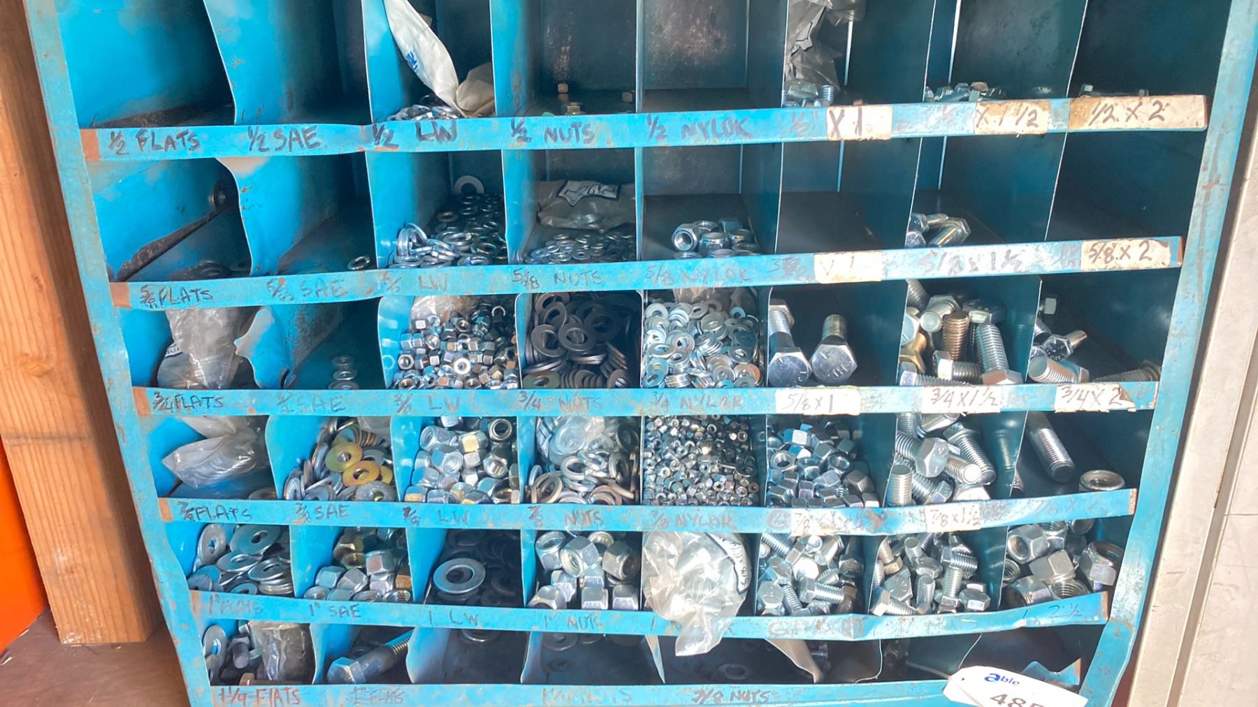 2 METAL PIGEON HOLE PARTS ORGANIZERS WITH CONTENTS - NUTS, BOLTS & WASHERS