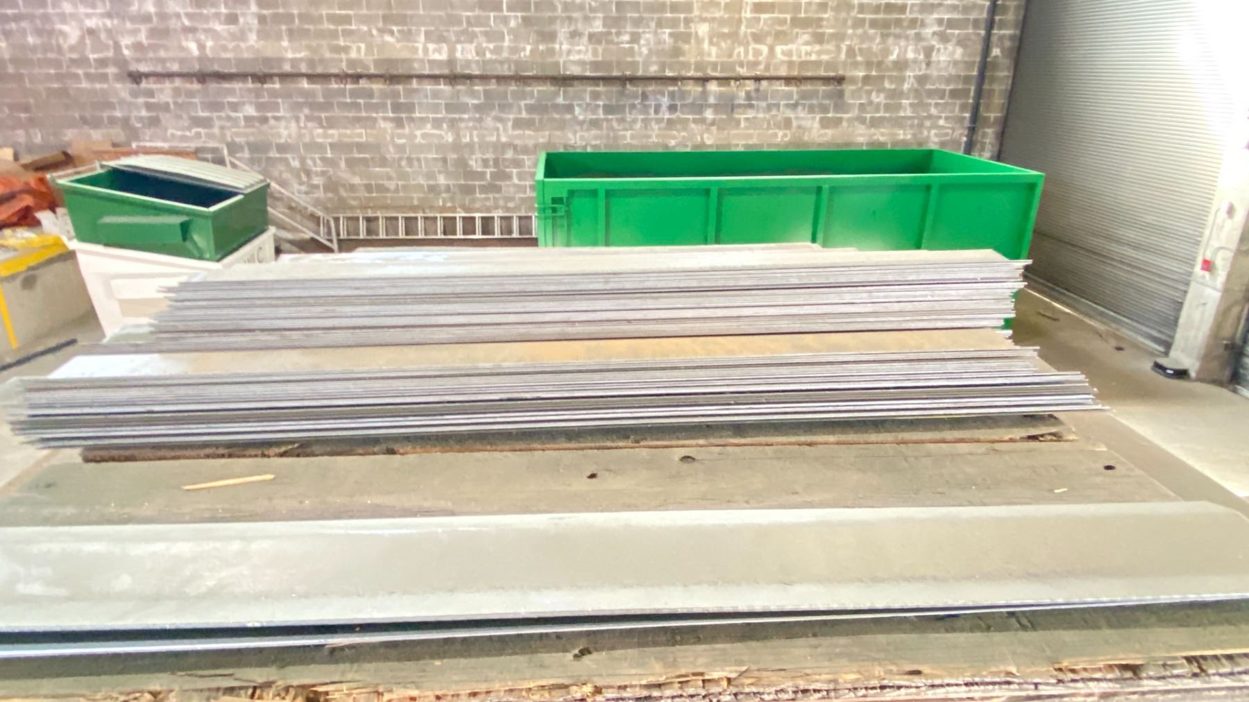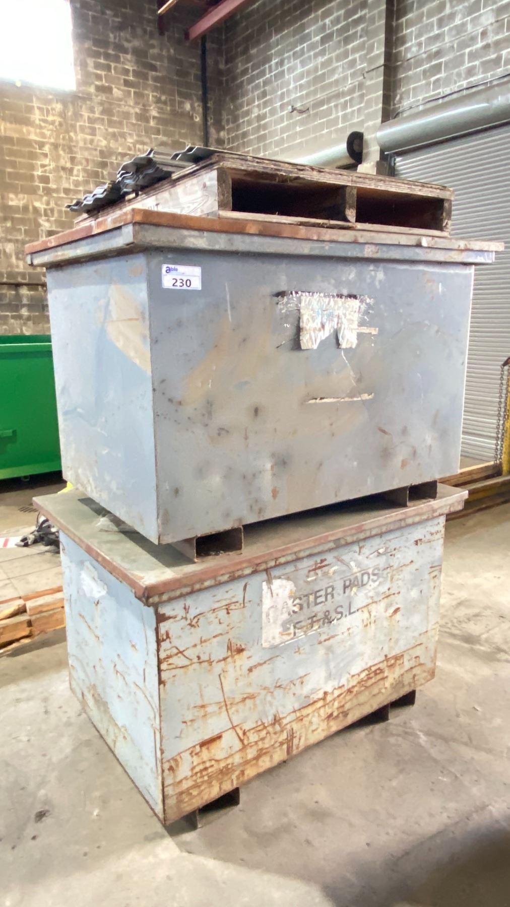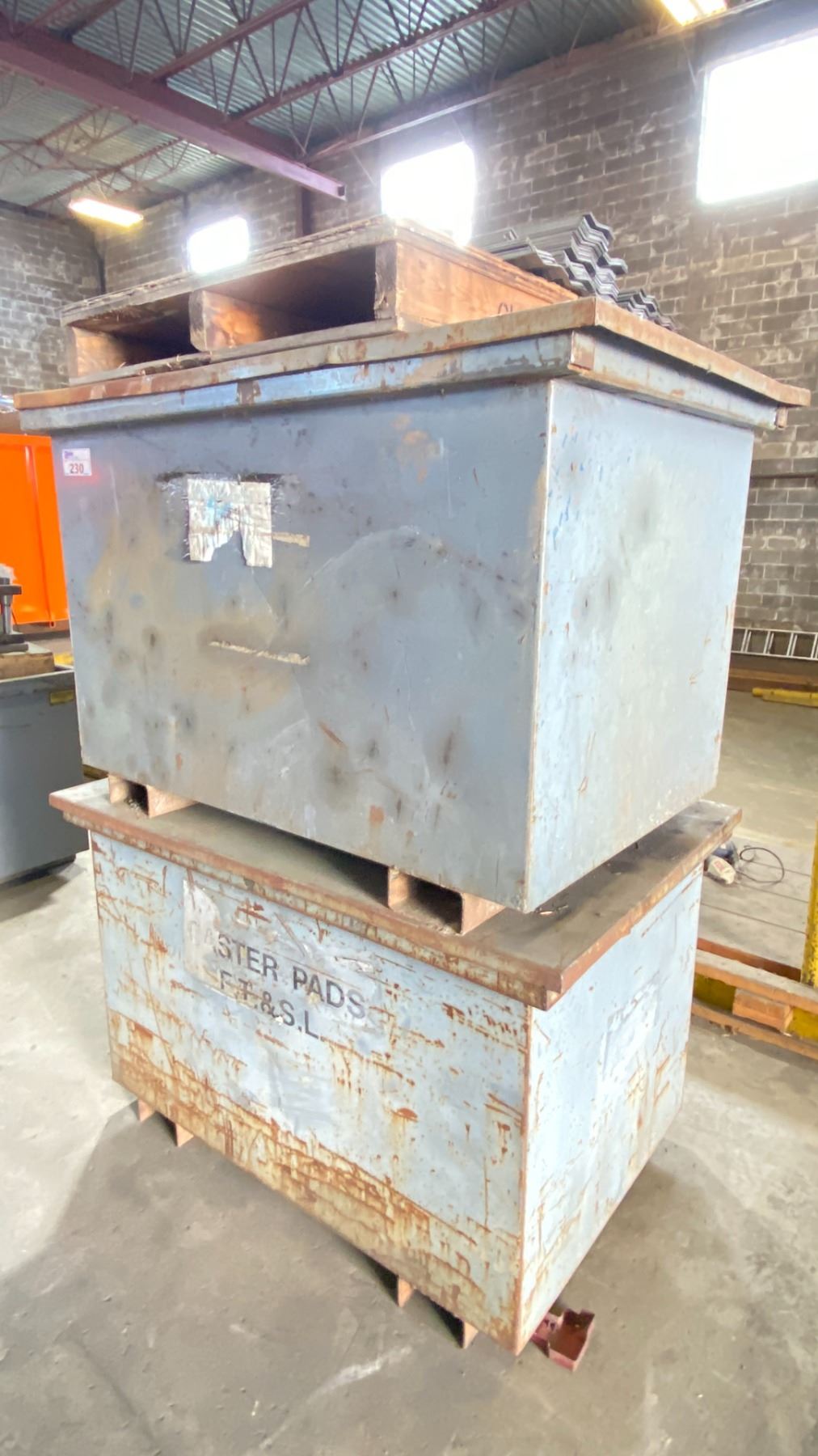 2 METAL SHOP BINS W/LIDS, PALLET OF SCRAP METAL *CONTENTS INCLUDED*
