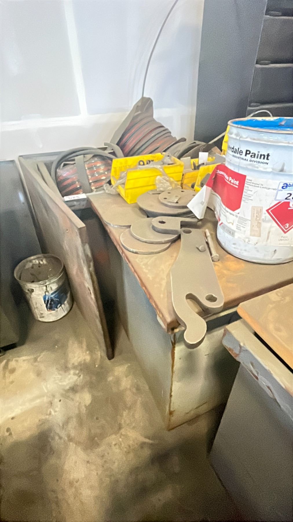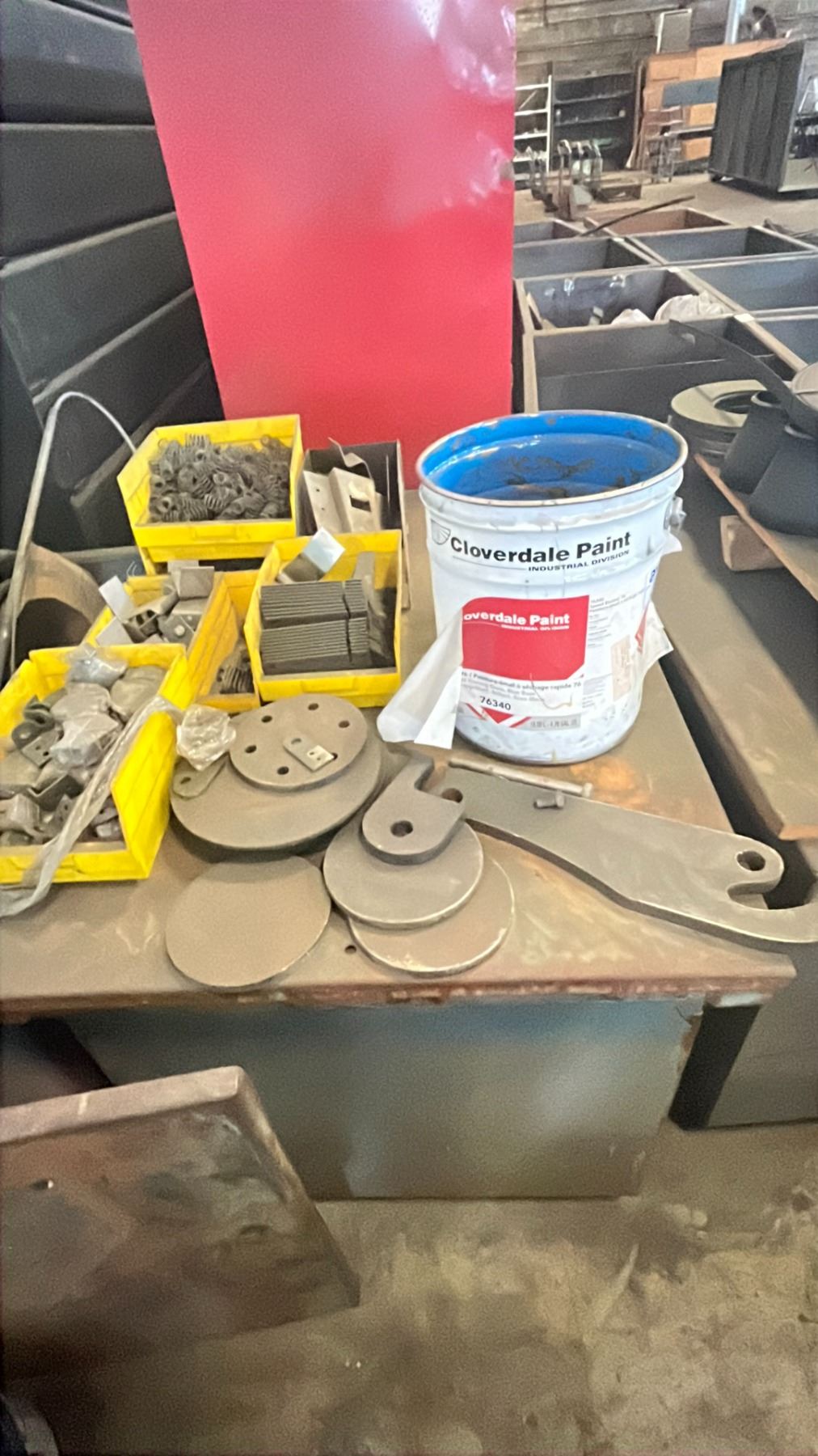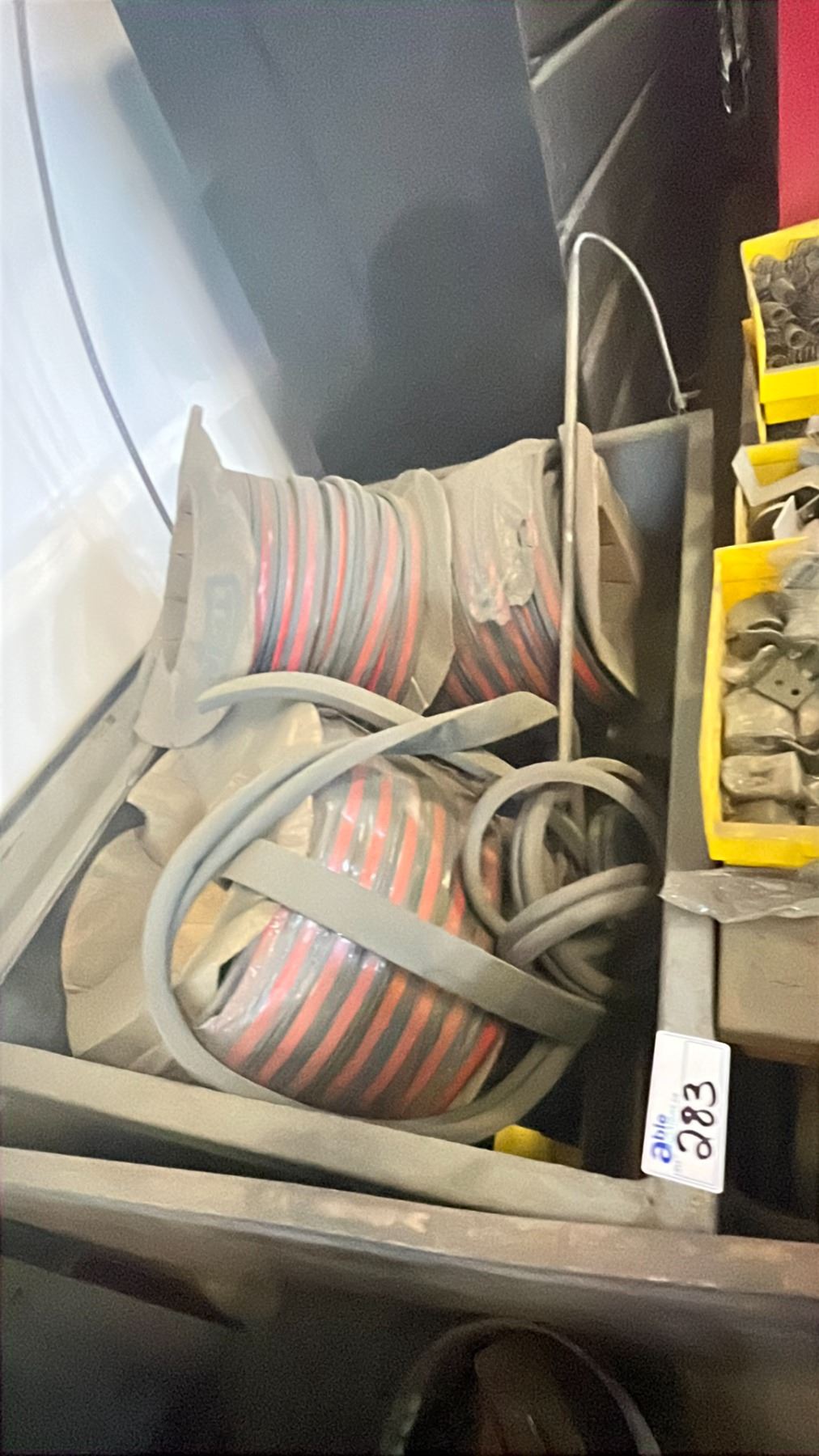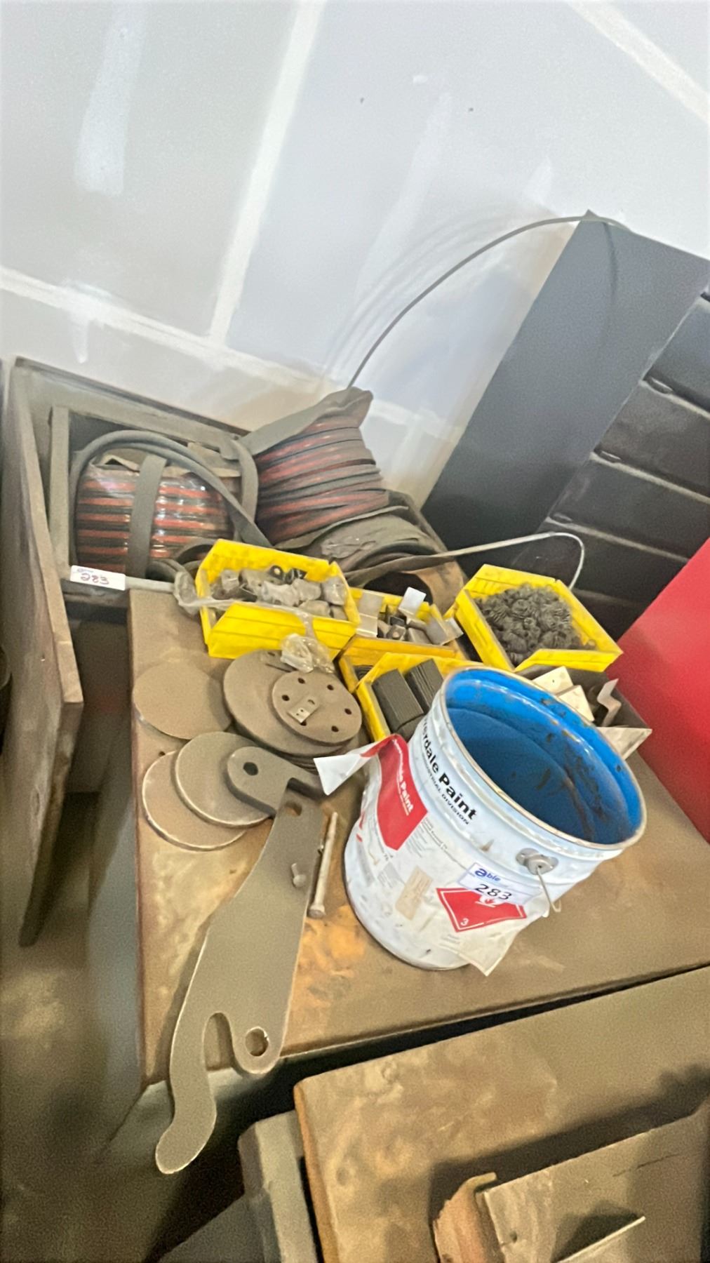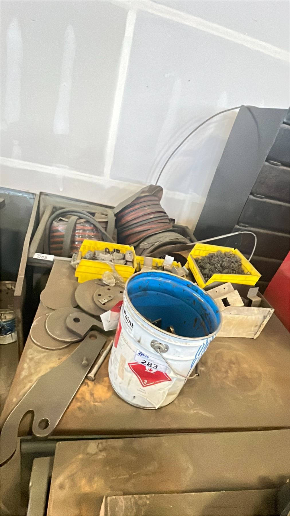2 METAL SHOP BINS WITH MISC CONTENTS INCLUDING RUBBER HOSES, SCRAP METAL & SPRINGS