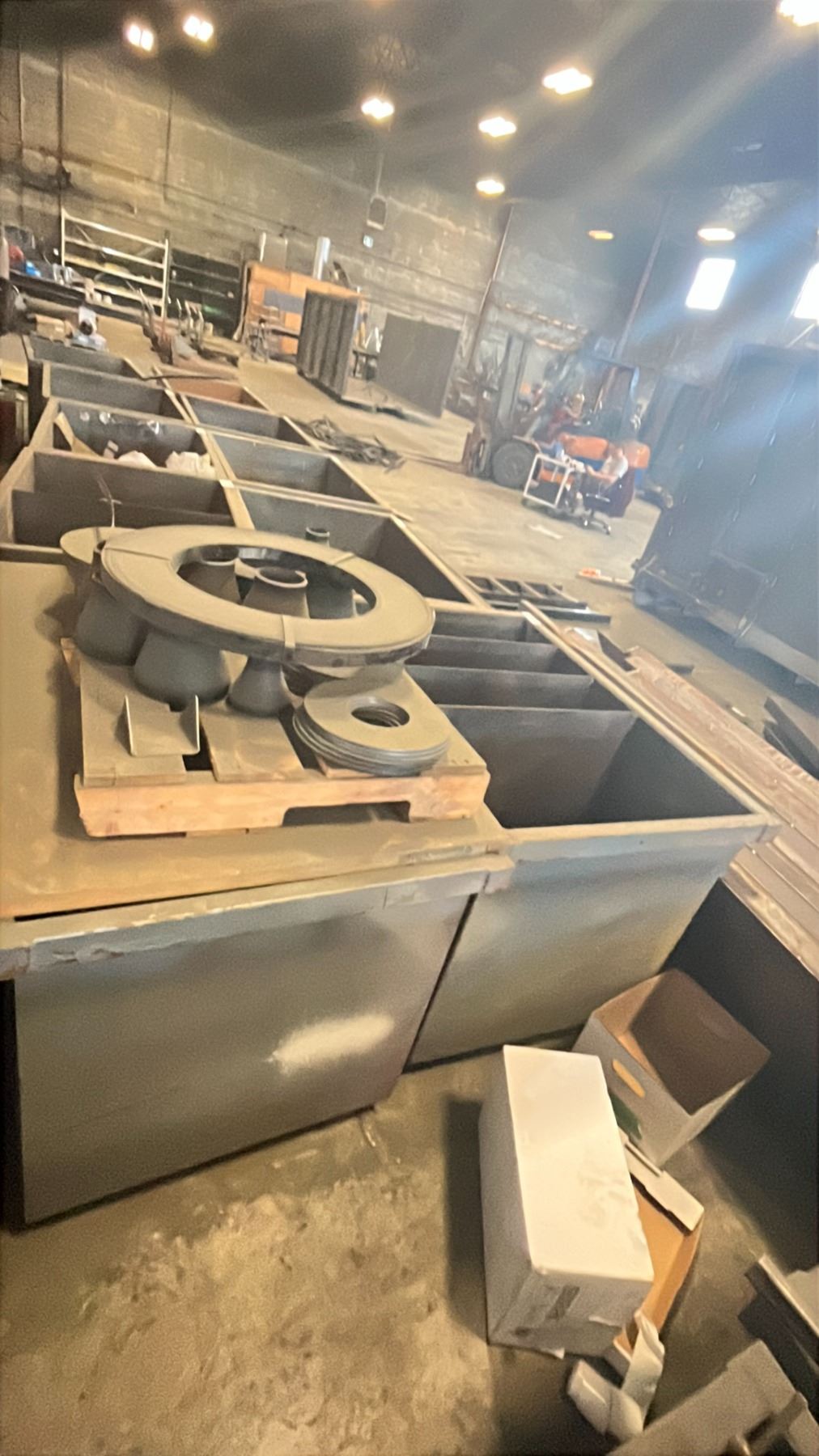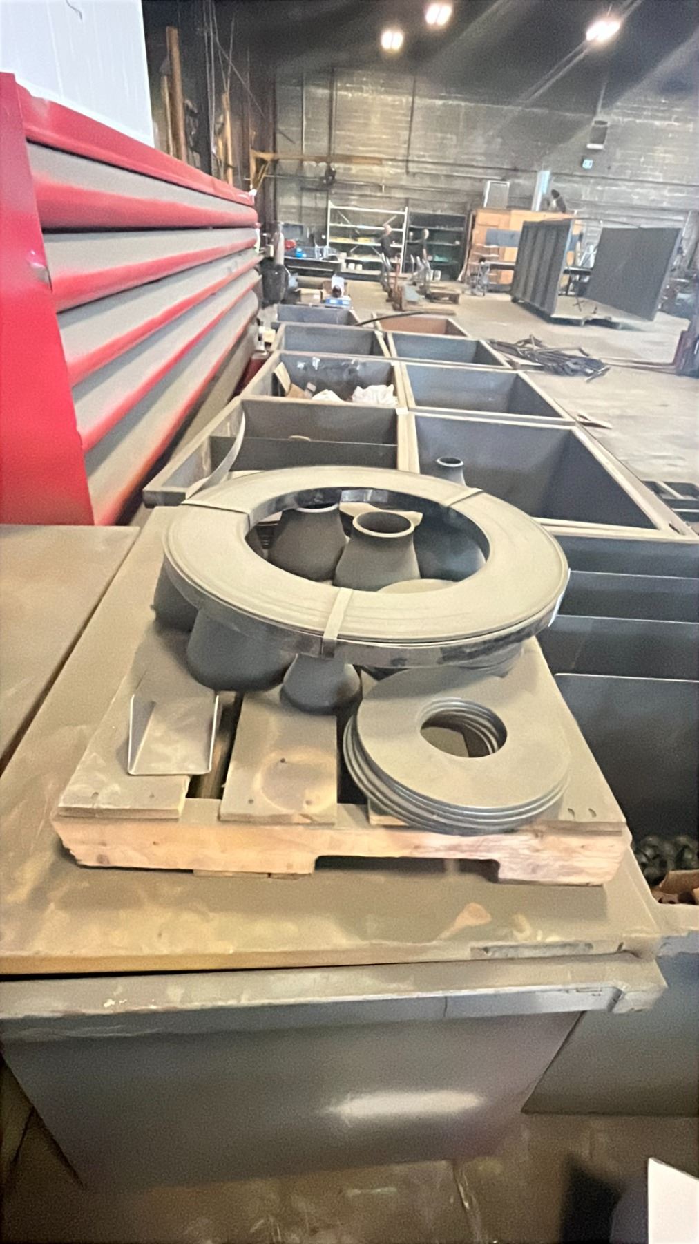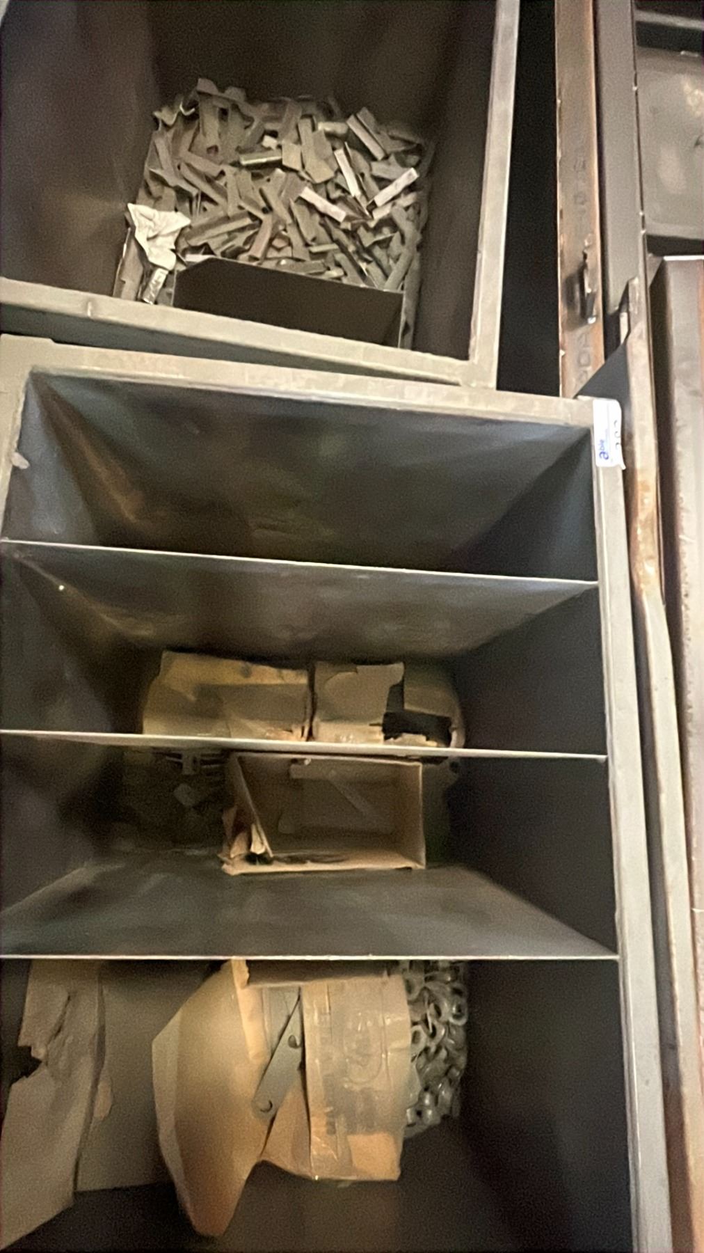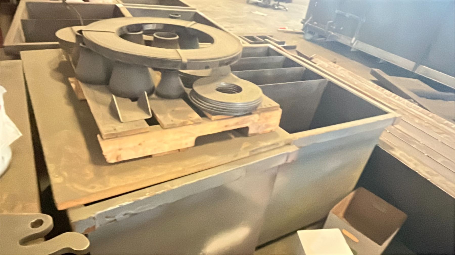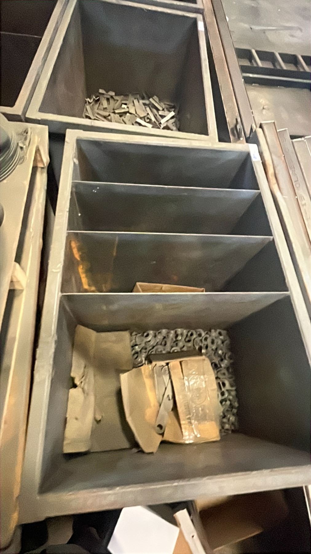 2 METAL SHOP BINS WITH SPARE PARTS & SCRAP METAL W/ PALLET OF PARTS/SCRAP *CONTENTS INCLUDED*