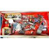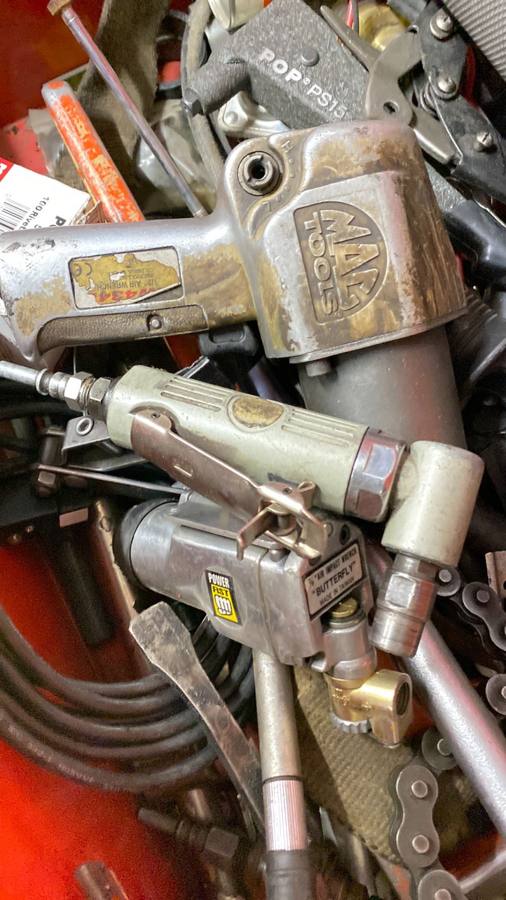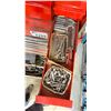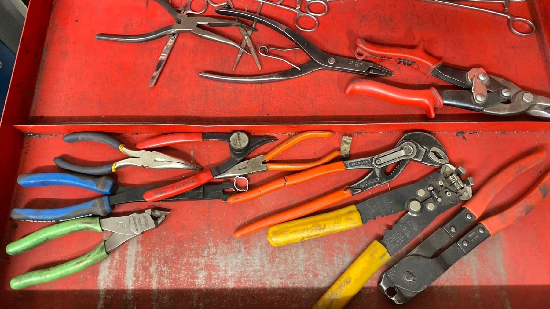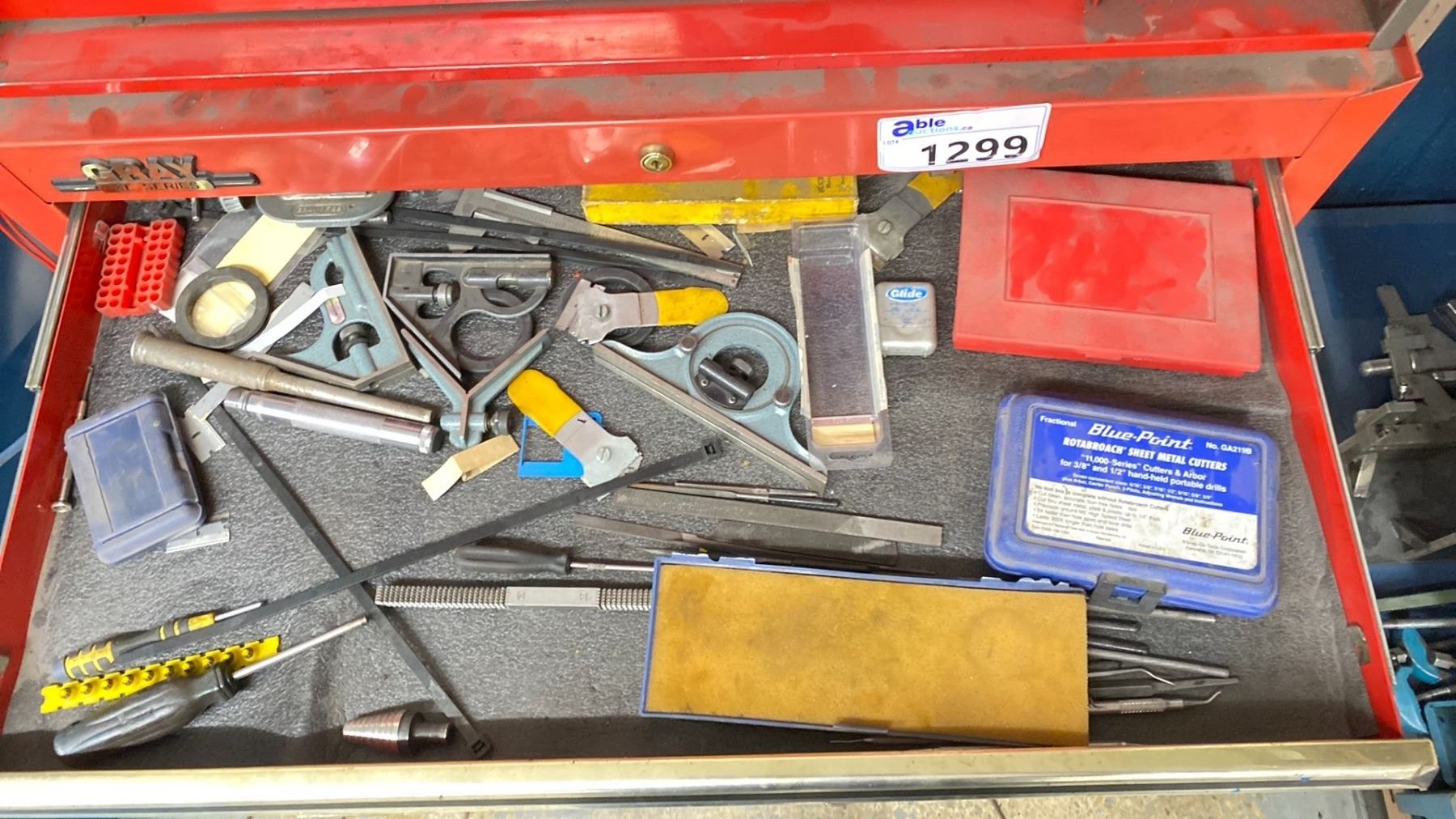 2 METAL TOOL BOXES. BOTTOM ON CASTORS. INC LARGE QUANTITY OF TOOLS. SOME SNAP-ON, GOOD VARIETY, HAMMERS, SCREWDRIVERS, COMB WRENCHES, MULTI-METERS AND MORE