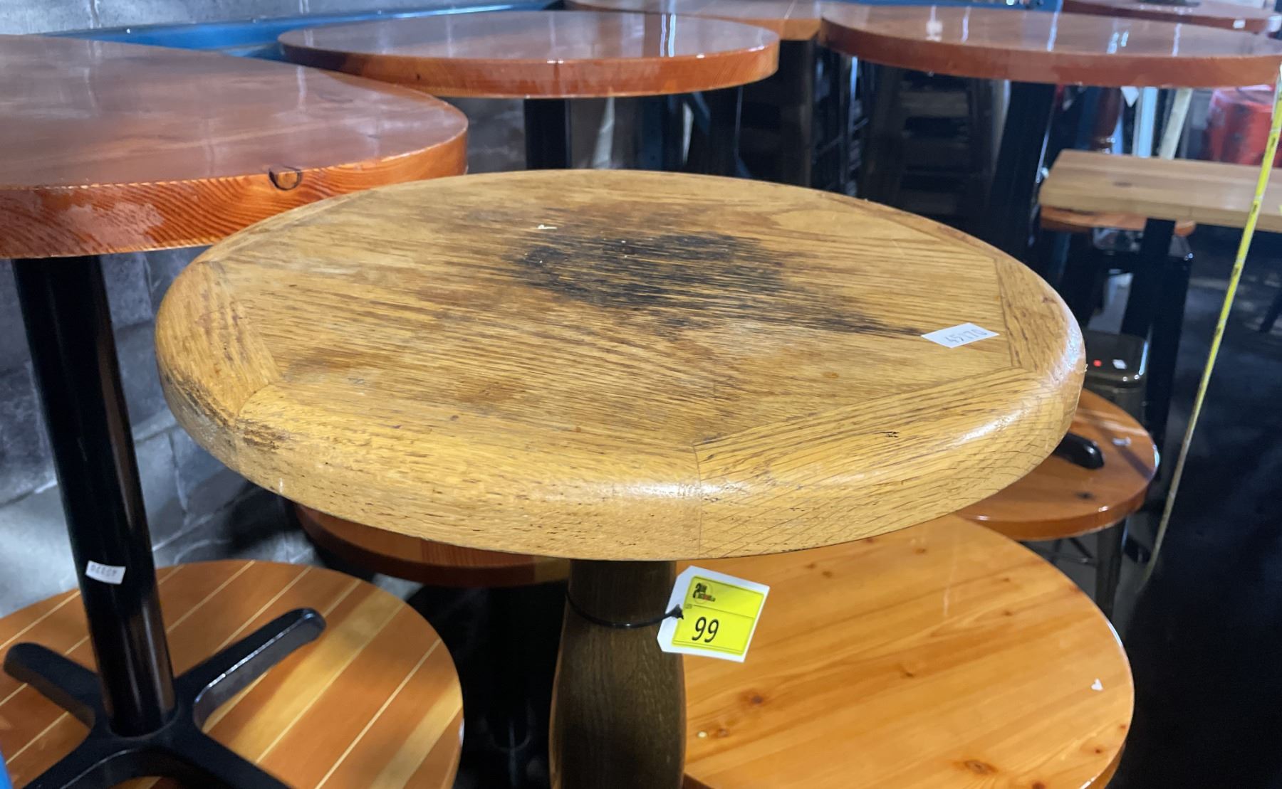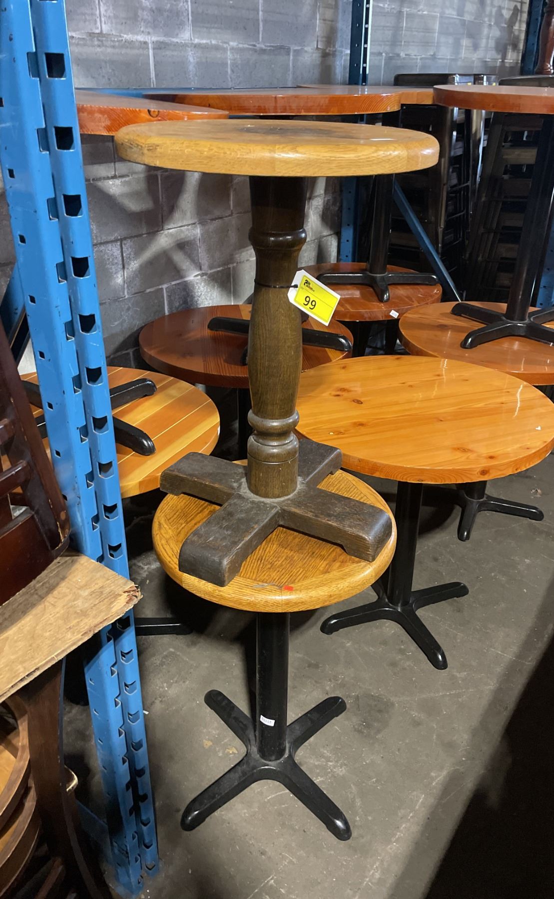 2 NATURAL WOOD 20" ROUND COMMERCIAL SINGLE PEDESTAL RESTAURANT TABLES