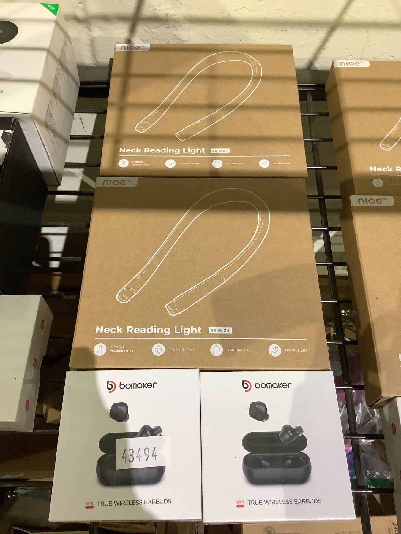 2 NECK READING LIGHTS AND 2 BOMAKER WIRELESS EARBUDS