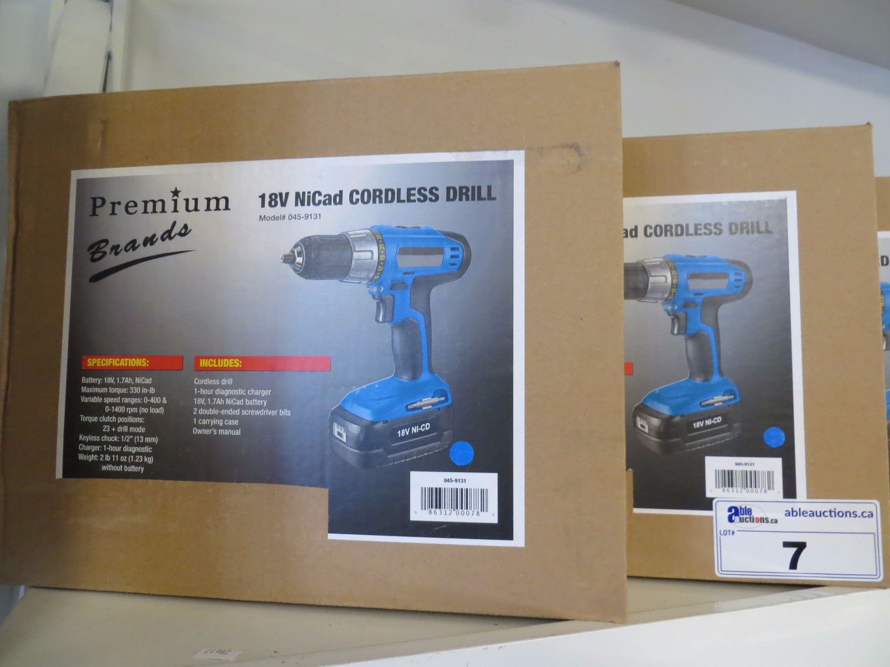 2 NEW PREMIUM BRANDS 18V NICAD CORDLESS DRILLS IN BOX