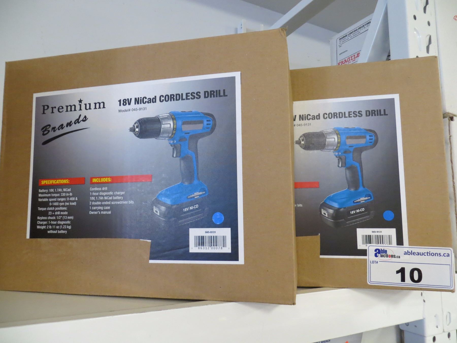 2 NEW PREMIUM BRANDS 18V NICAD CORDLESS DRILLS IN BOX