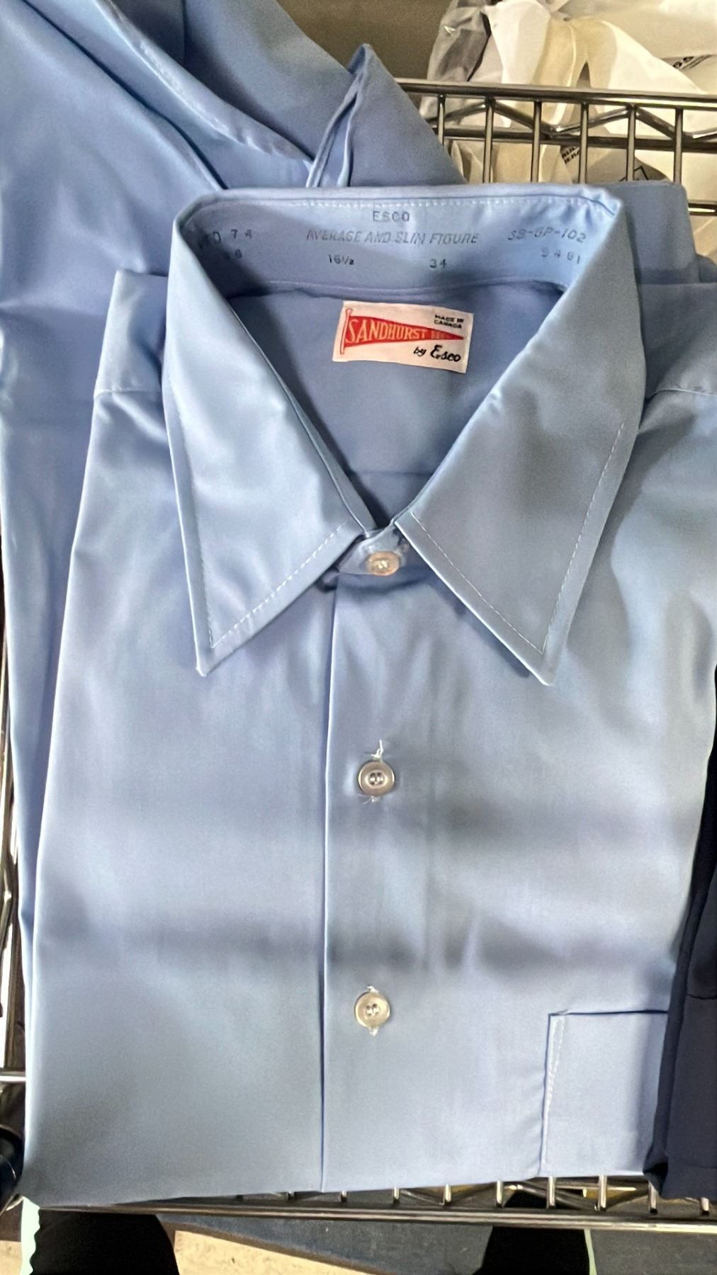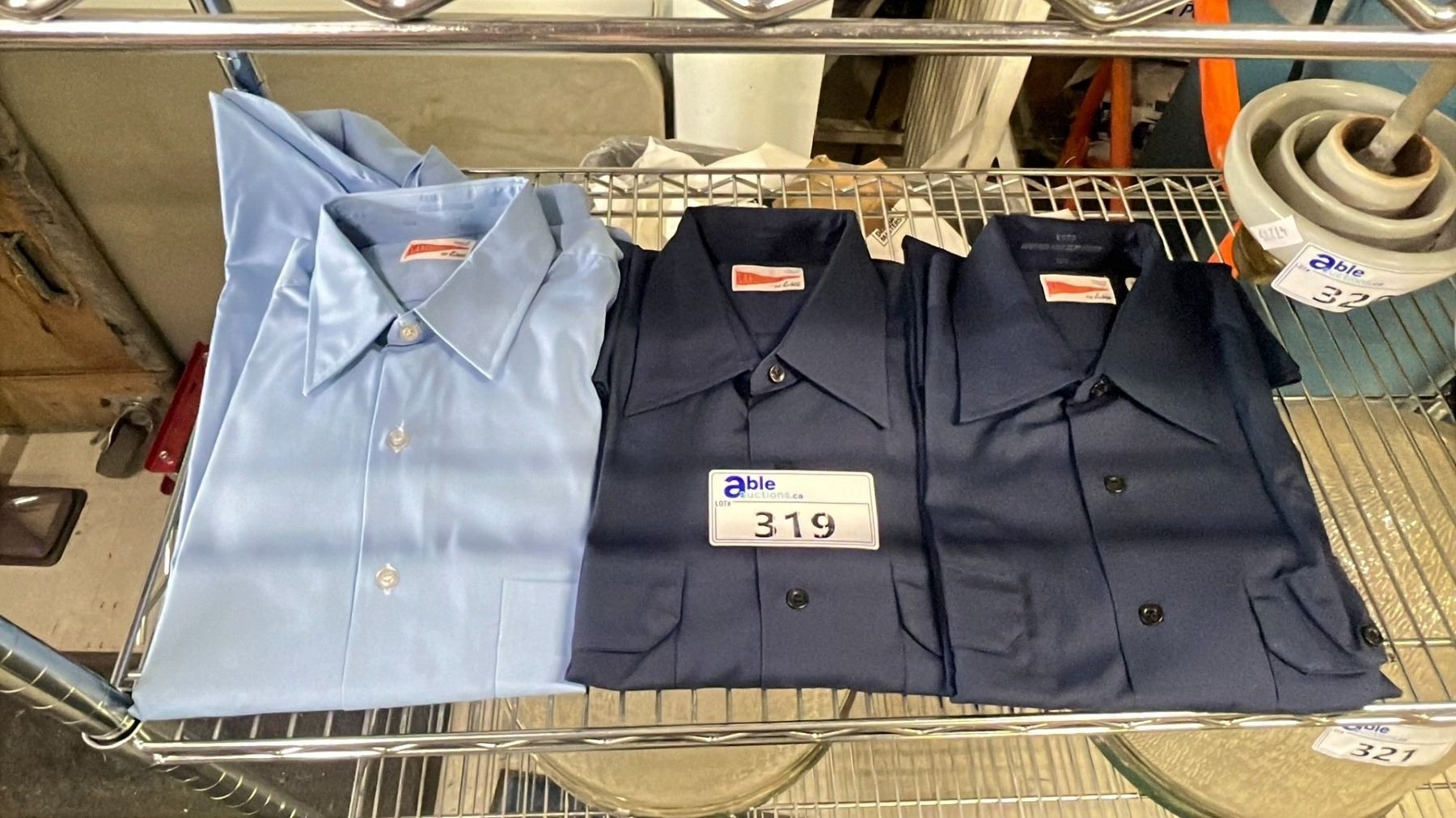 2 NORTH VANCOUVER FIRE DEPARTMENT SHIRTS & BLUE DRESS SHIRT ( UNKNOWN SIZES )