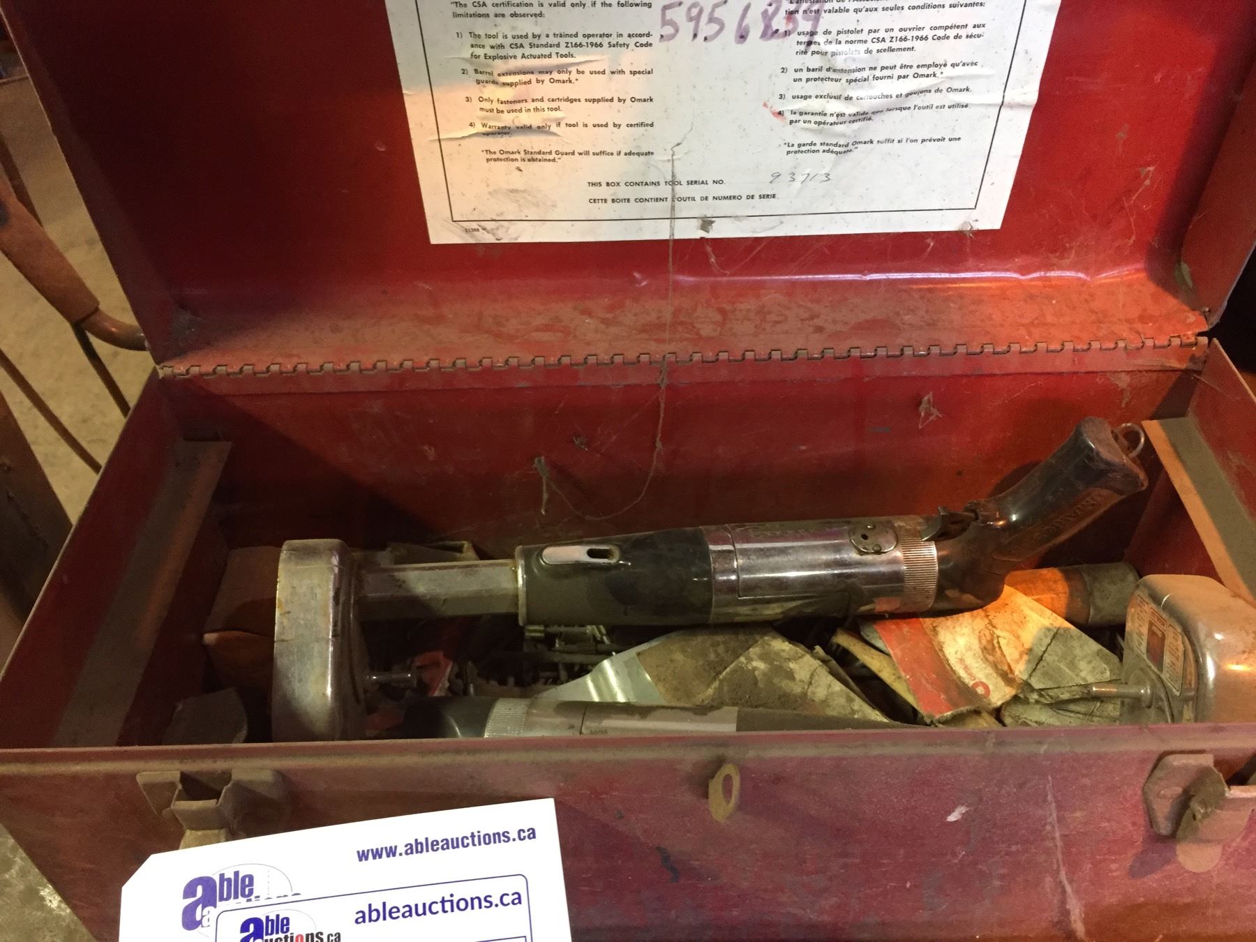 2 OMARK 330 POWDER ACTUATED TOOLS WITH TOOL BOX AND CONTENTS