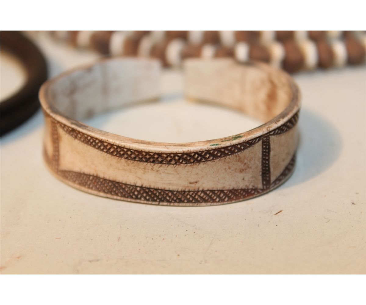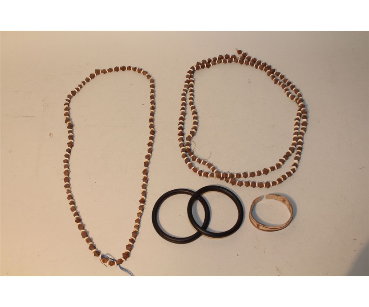 2 OSTRICH SHELL BUSHMAN NECKLACES AND 3 BRACELETS