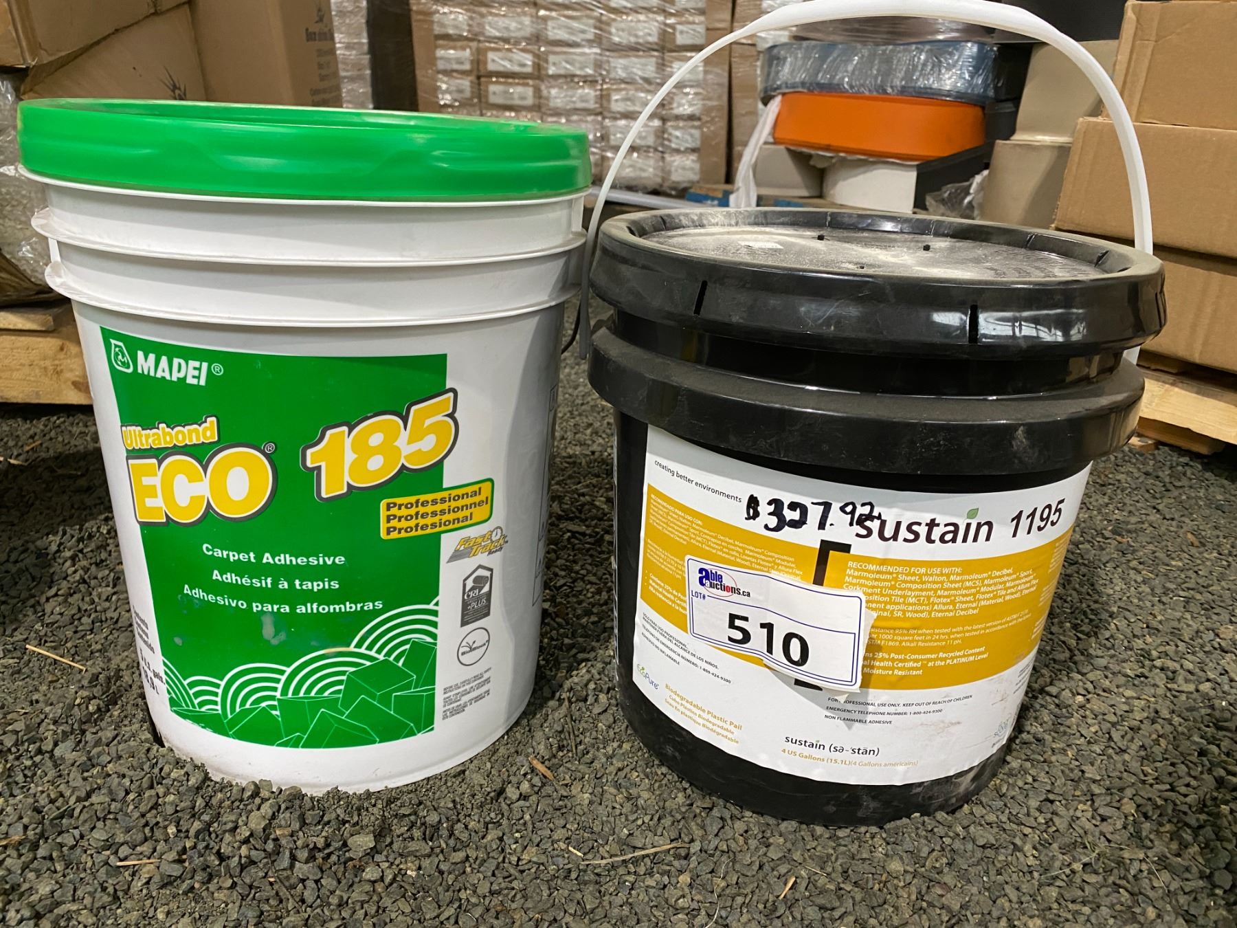 2 PAILS. 18.9 L MAPEI ULTRABOND ECO 185 AND 15.14 L SUSTAIN 1195