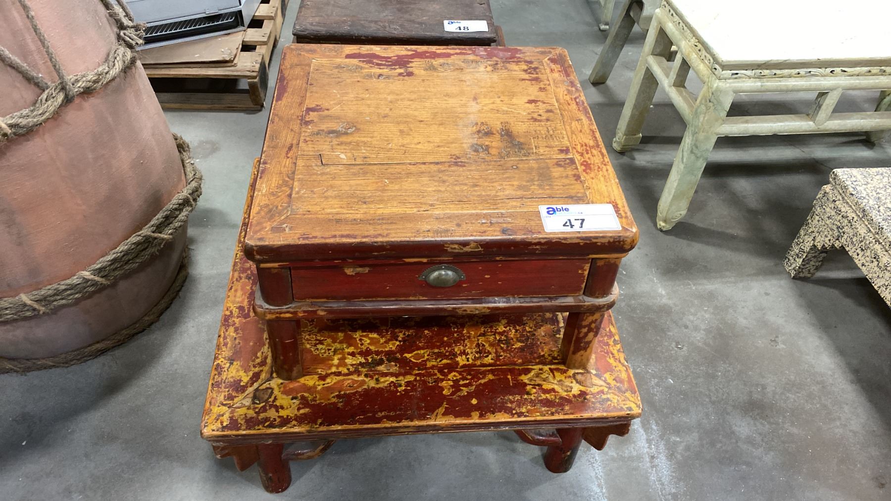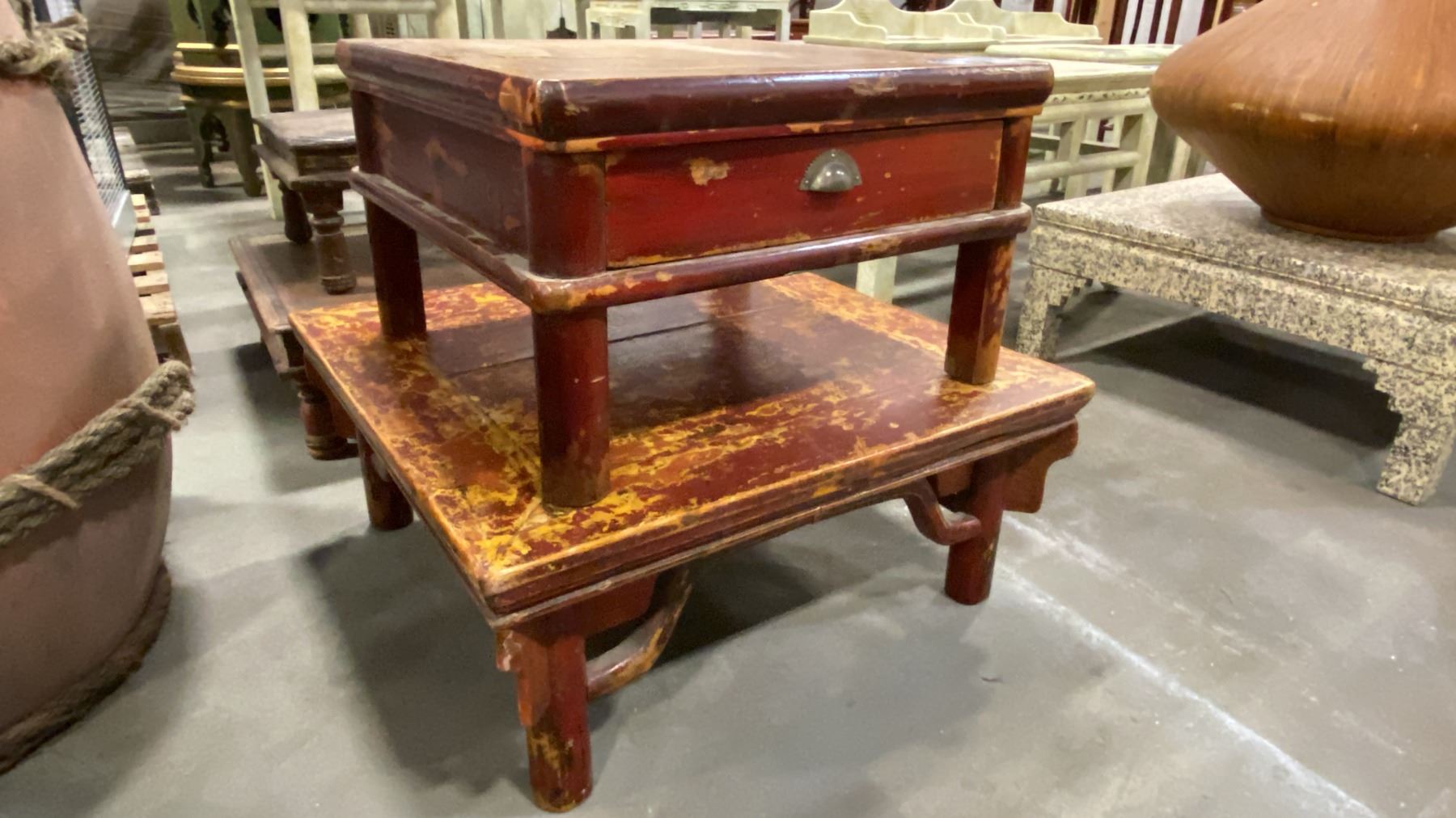 2 PAINTED RED SOLID WOOD SIDE TABLES
