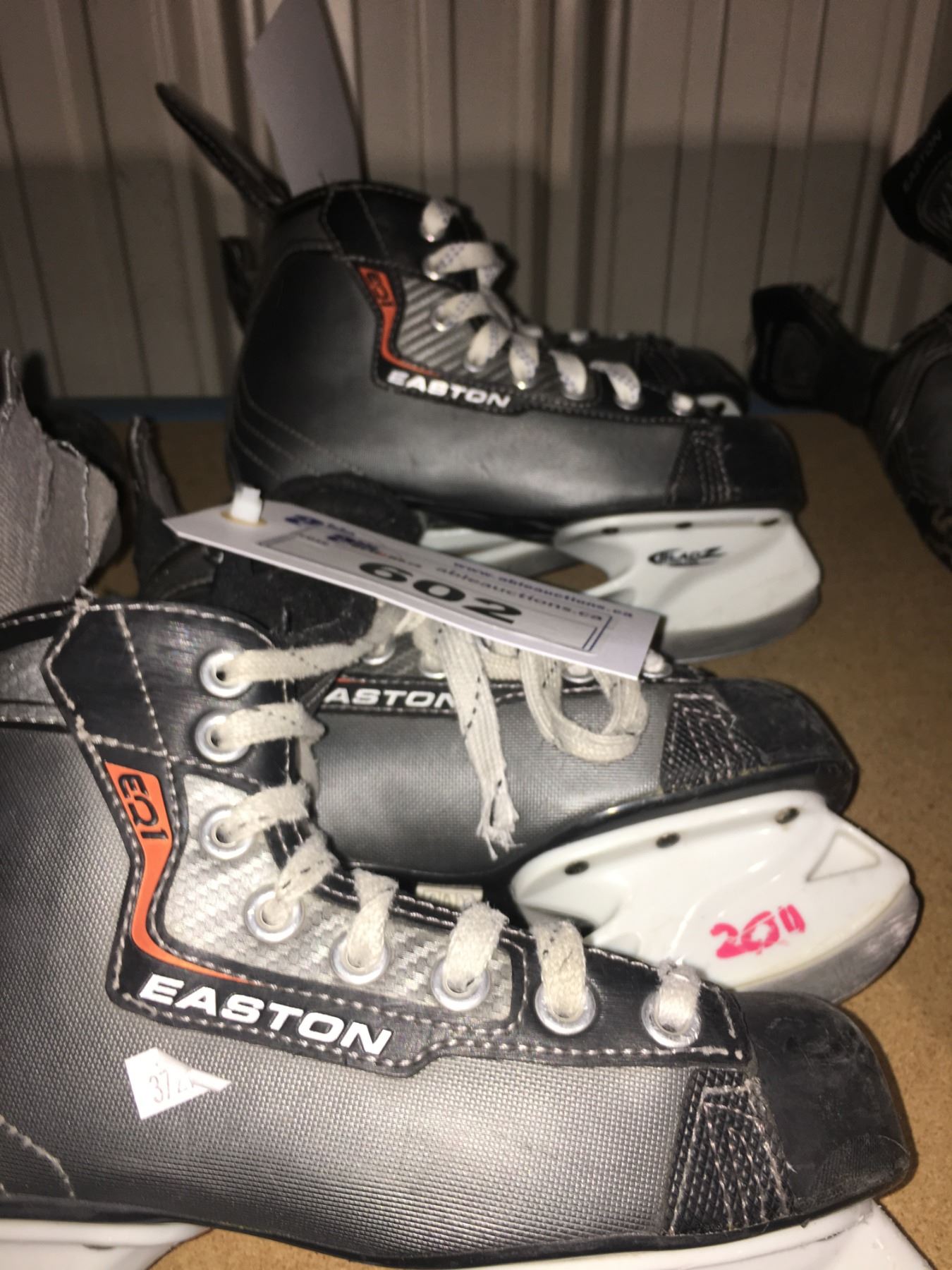 2 PAIR OF EASTON EQ1 HOCKEY SKATES: SIZE 4.10 / 2.1