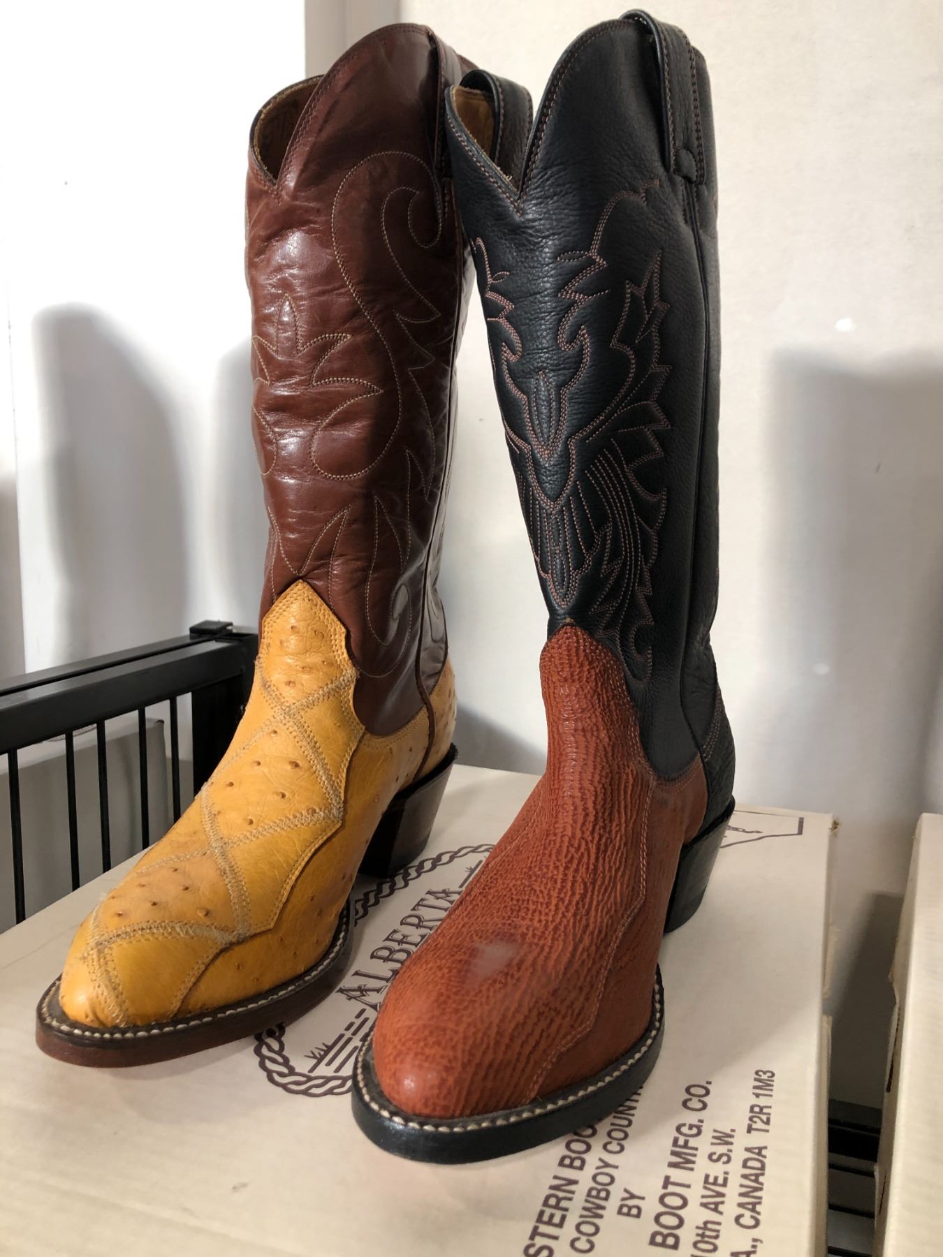 2 PAIRS OF ALBERTA BRAND COWBOY BOOTS - 1 X SIZE 9.5 AND 1 X SIZE 9