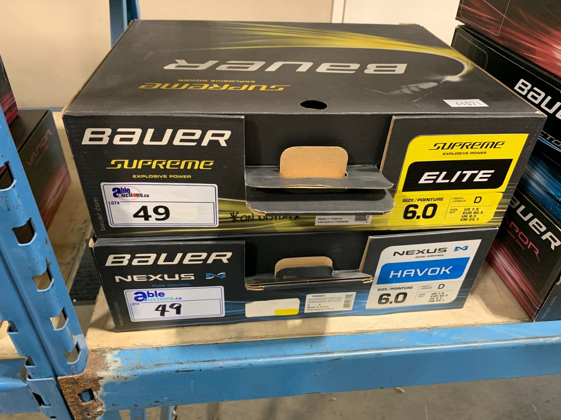 2 PAIRS OF BOXED PROFESSIONAL HOCKEY ICE SKATES: BAUER SUPREME ELITE ( SR SIZE: 6, D WIDTH ) BAUER NEXUS HAVOK ( SR SIZE: 6, D WIDTH )