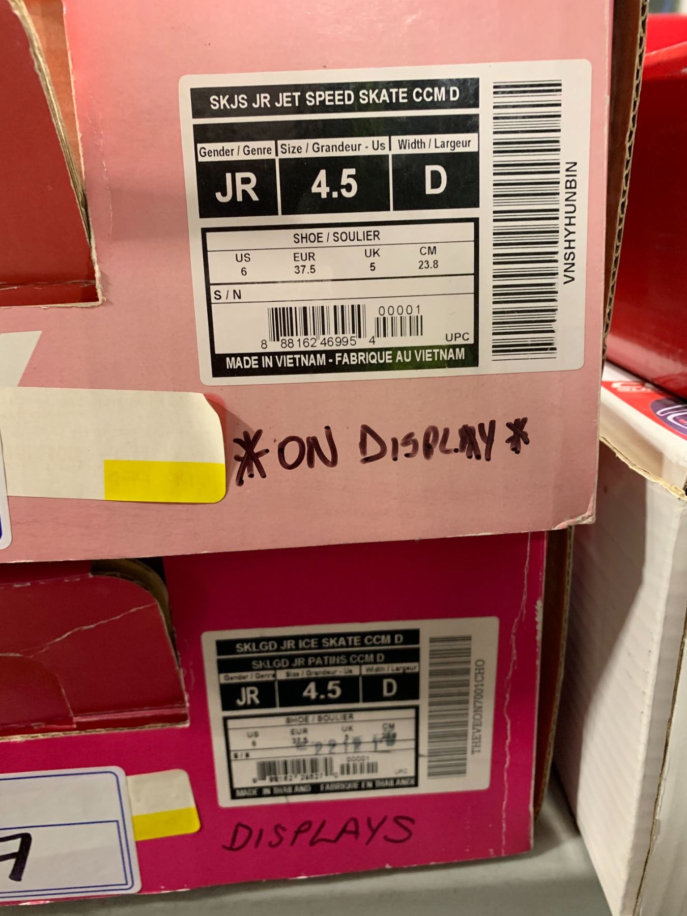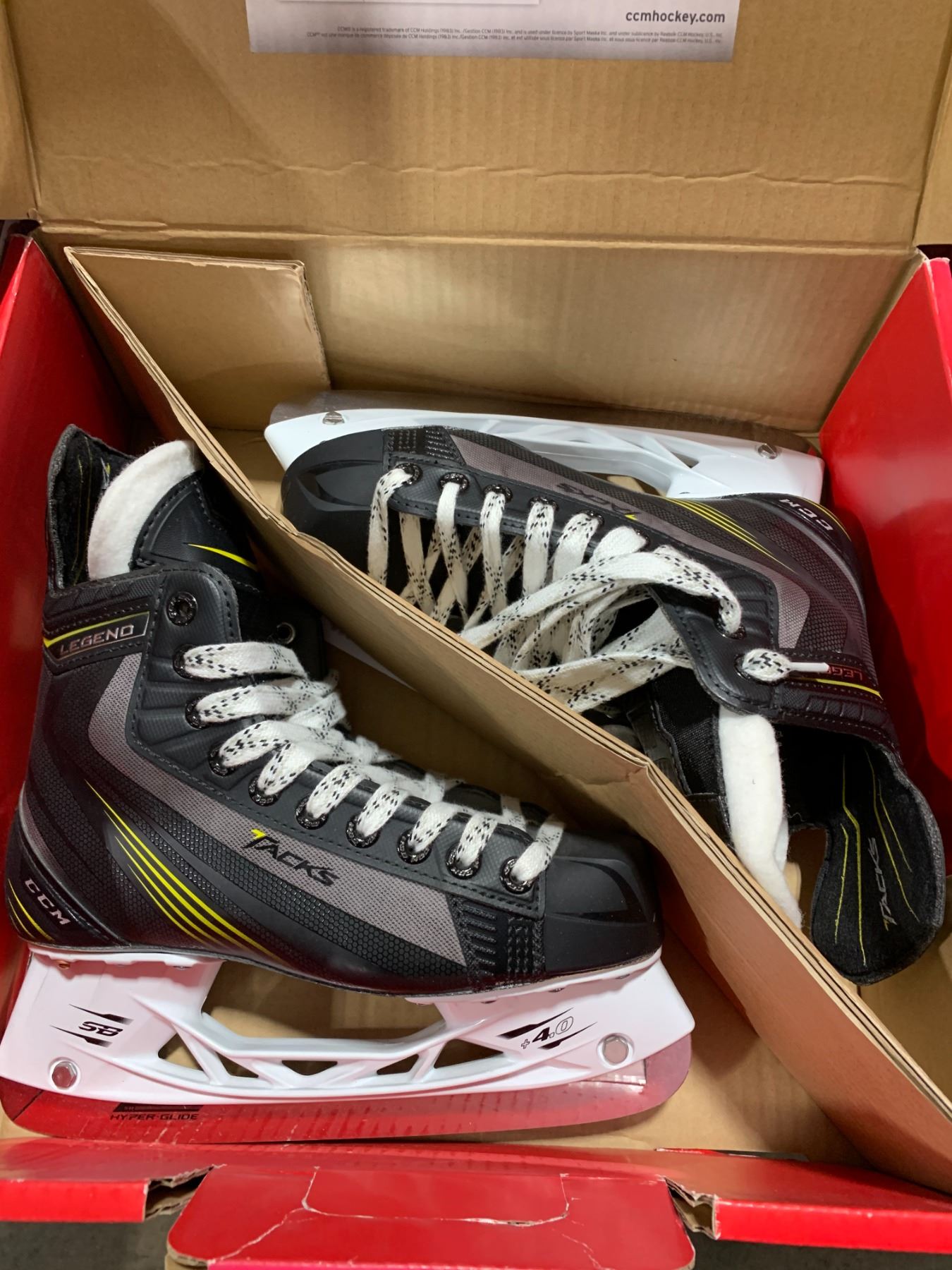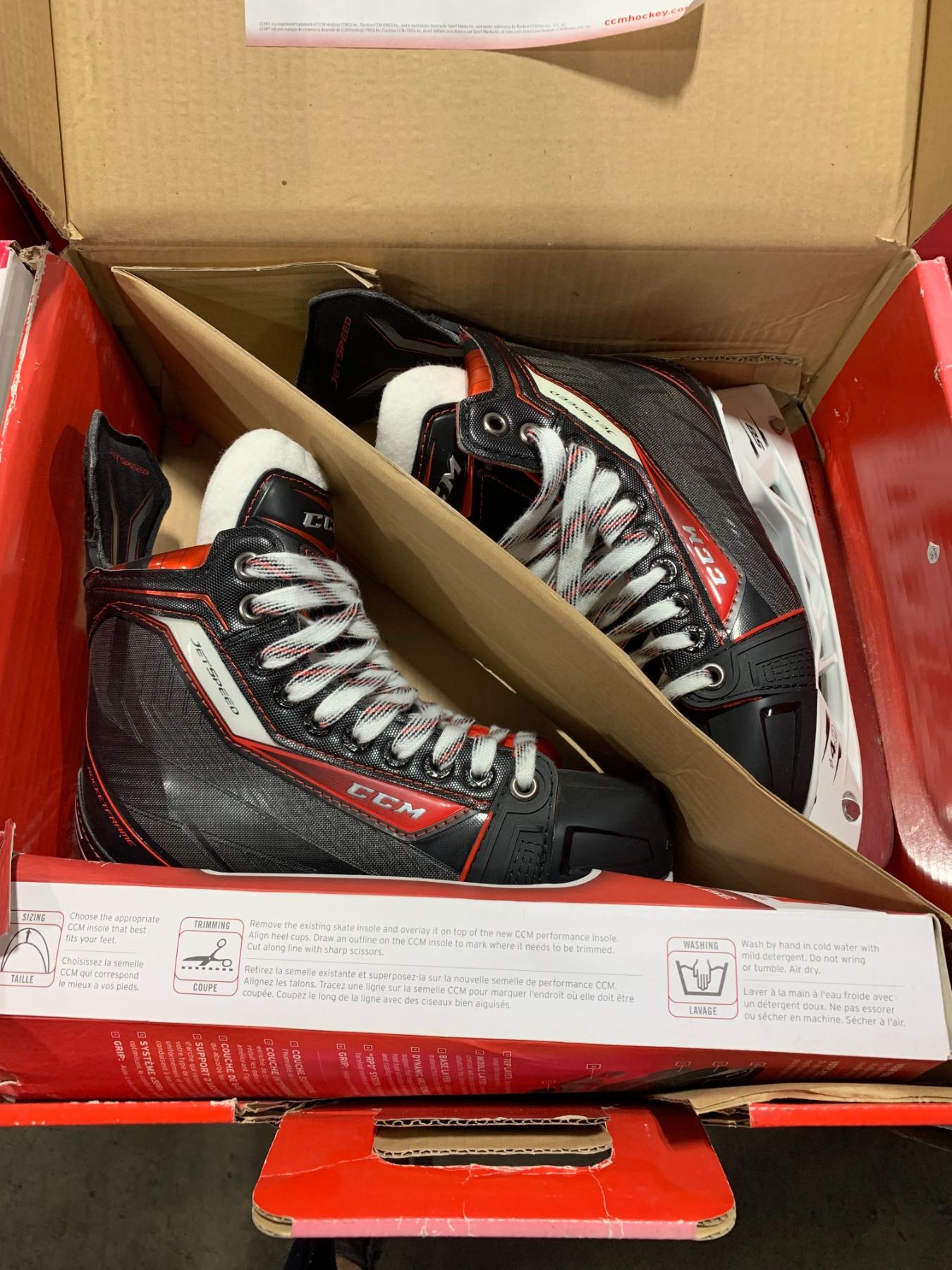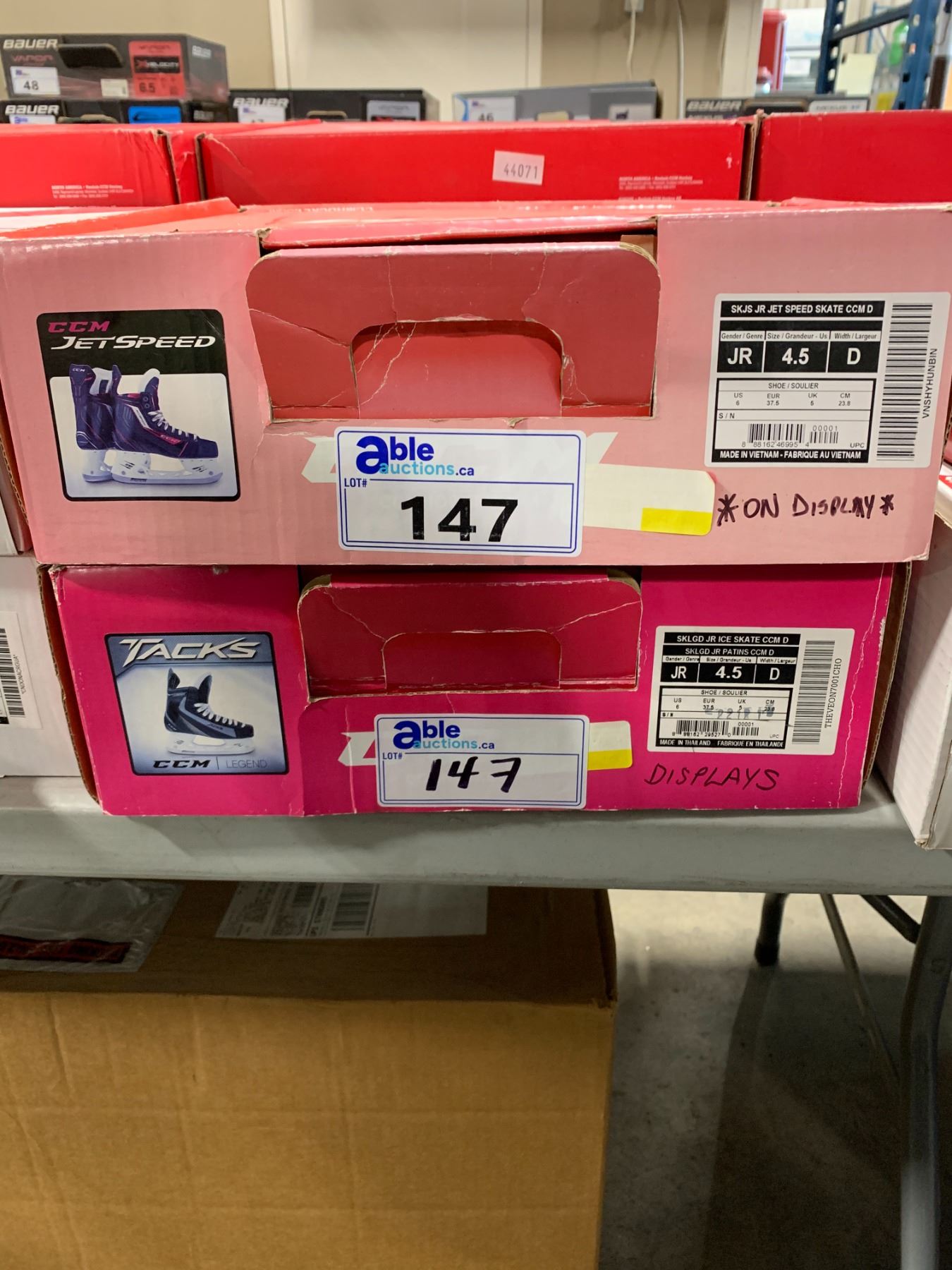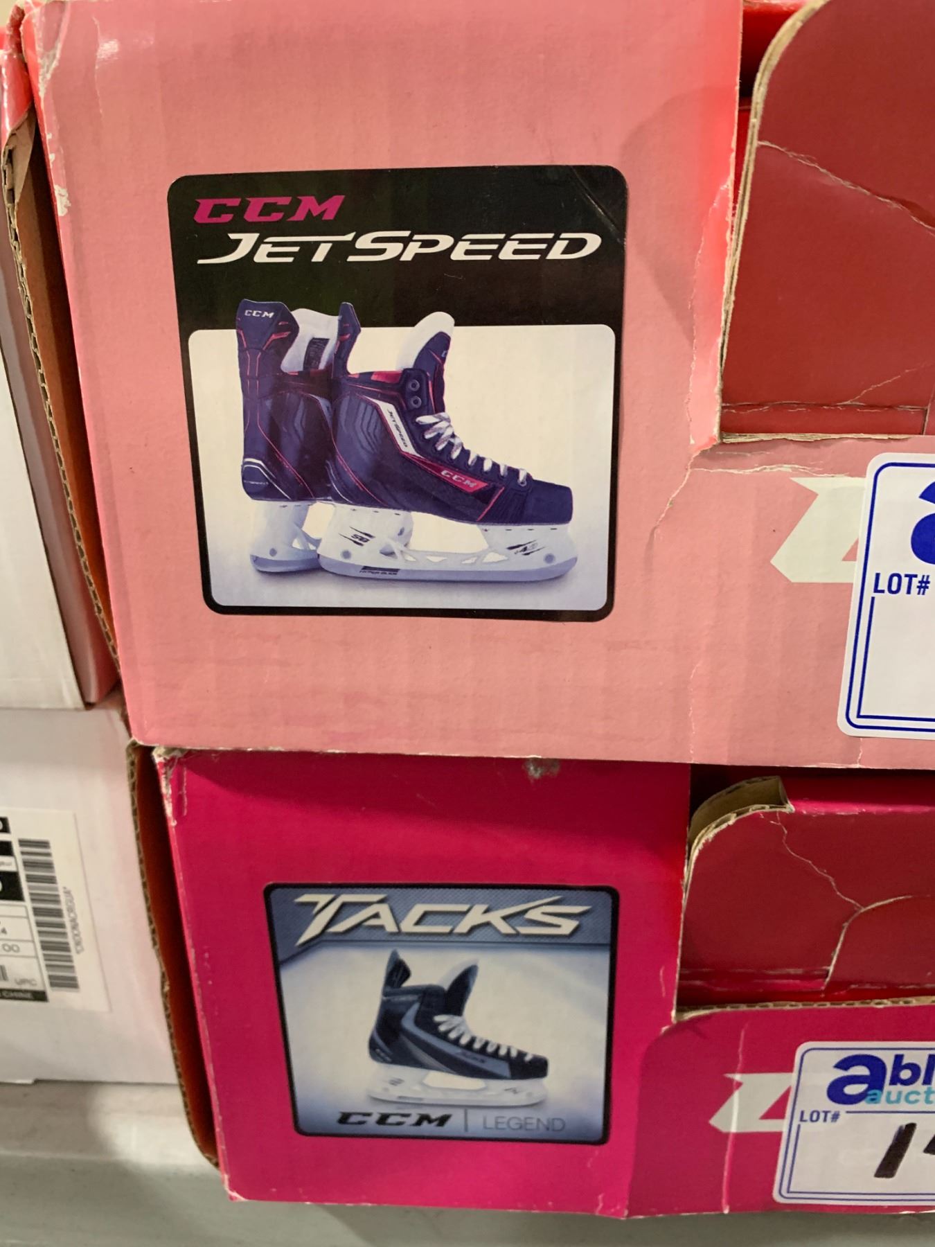 2 PAIRS OF BOXED PROFESSIONAL HOCKEY ICE SKATES: CCM JETSPEED, (JR SIZE: 4.5, D WIDTH ) CCM TACKS LEGEND, (JR SIZE: 4.5, D WIDTH )