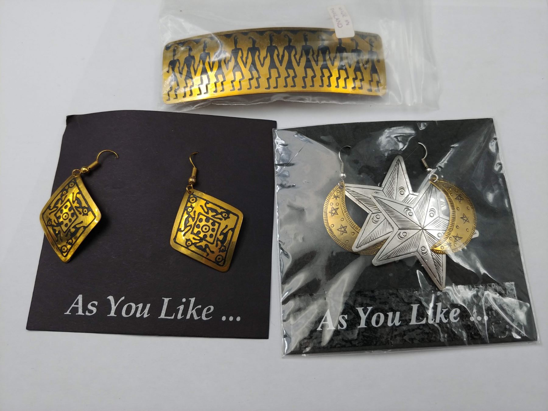 2 PAIRS OF HANDCRAFTED EARRINGS WITH MATCHING HAIR CLIP (MADE IN CHIANG MAI, THAILAND)