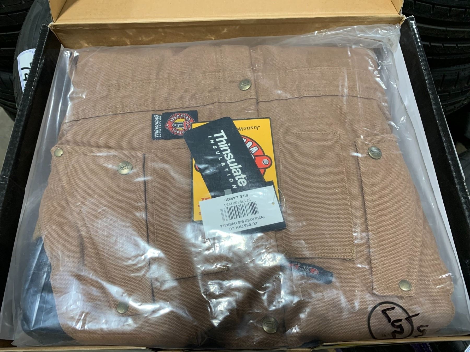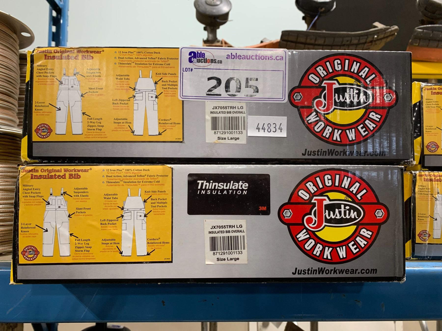 2 PAIRS OF JUSTIN ORIGINAL SIZE LARGE INSULATED BIB WORKWEAR OVERALLS