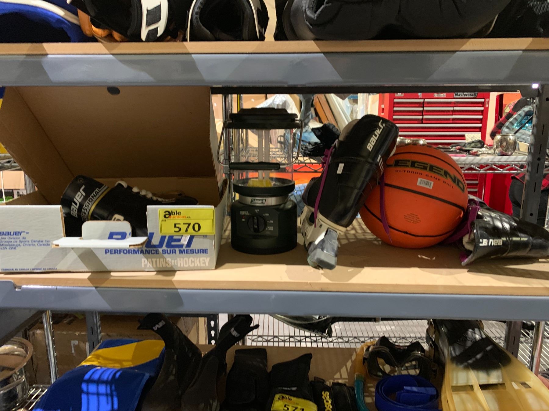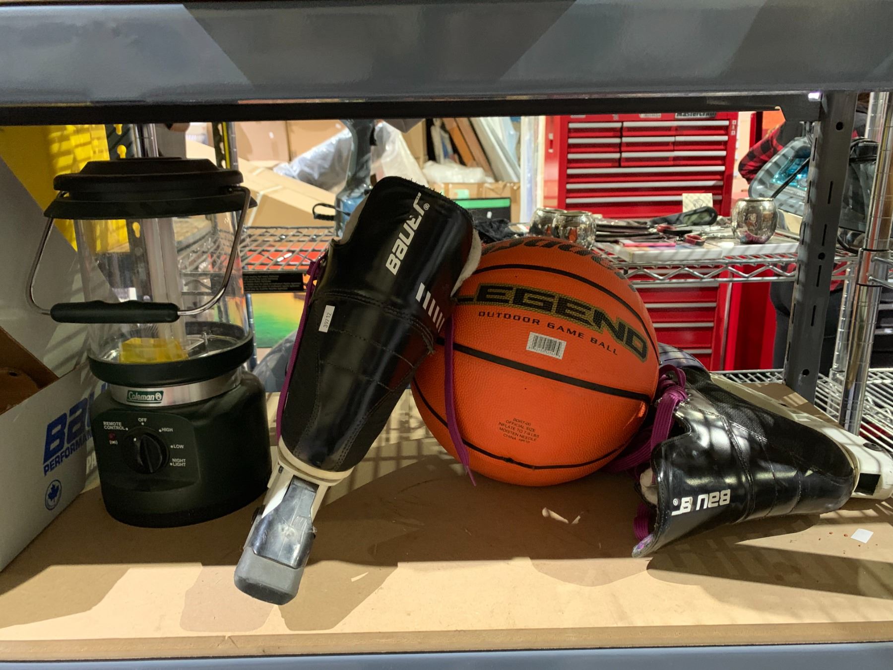 2 PAIRS OF SKATES, COLEMAN LANTERN AND BASKETBALL