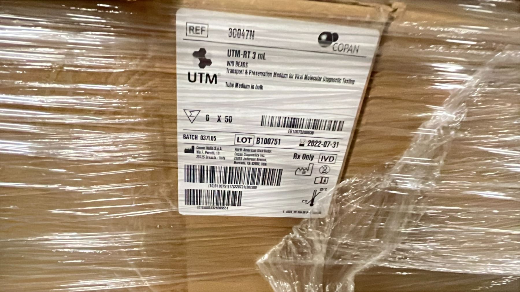 2 PALLET OF (LEVEL 2) DISPOSABLE ISOLATION GOWNS - WHITE/SZ LARGE AND 13 PALLETS VIRAL MOLECULAR DIAGNOSTIC TESTING TUBES