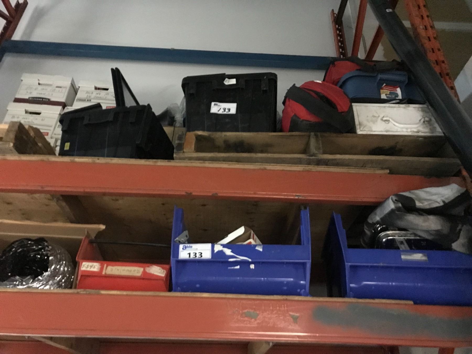 2 PALLET RACKING SHELVES FILLED WITH ASSORTED TOOLS, SHOP SUPPLIES, HARDWARE & MISCELLANEOUS ***COMPANY PAPERWORK BOXES NOT INCLUDED*** *RACKING NOT INCLUDED*