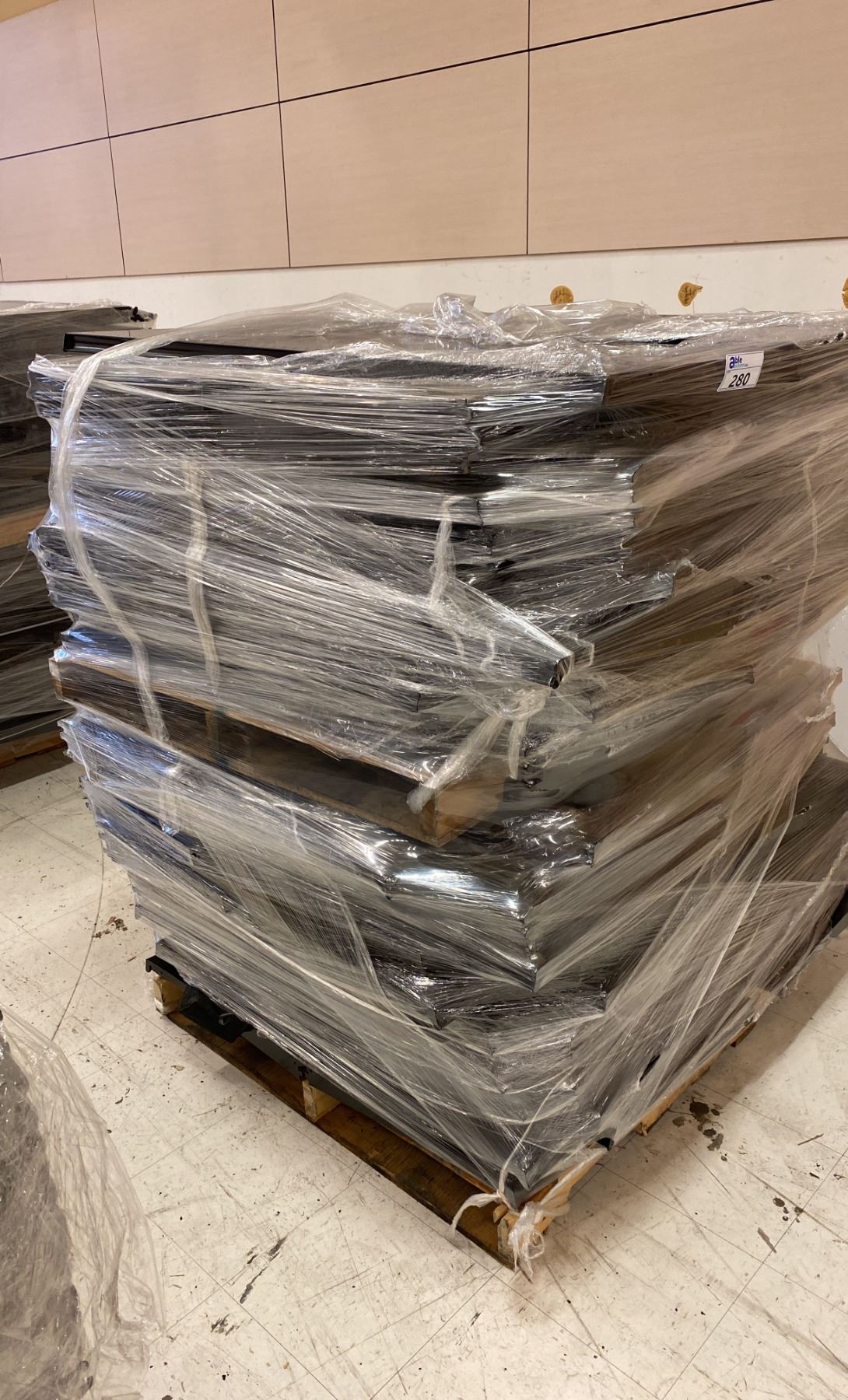 2 PALLET STACK OF 48" BLACK METAL GONDOLA SHELVING SHELVES