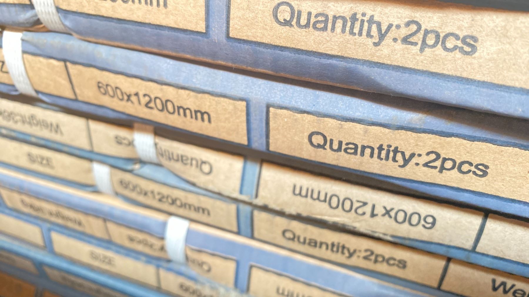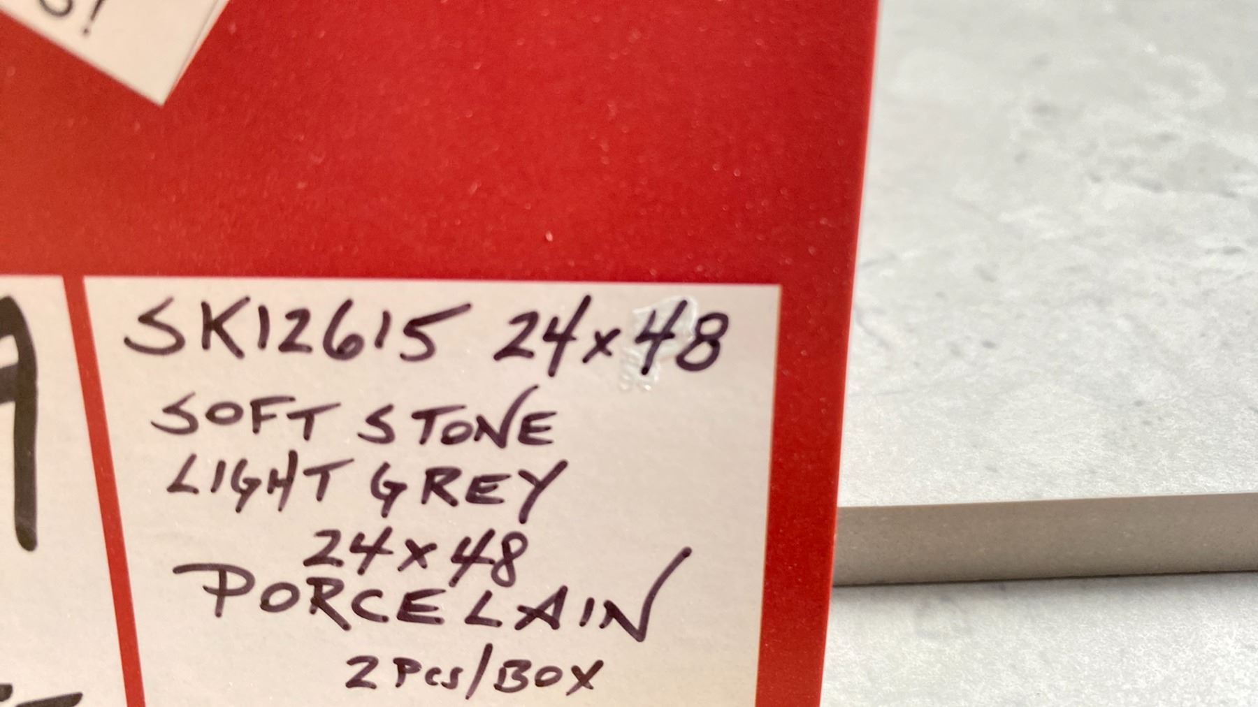 2 PALLETS OF 24 X 48" PORCELAIN TILE IN SOFT STONE LIGHT GREY, 16SQ.FT. PER BOX, APPROX 60 BOXES,