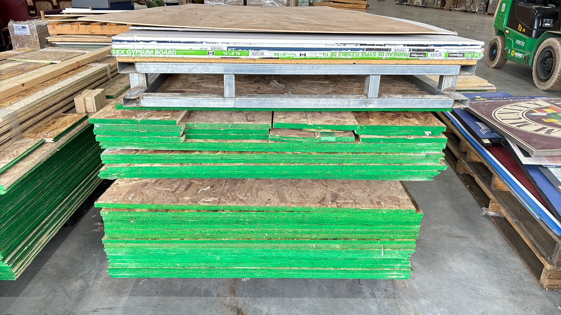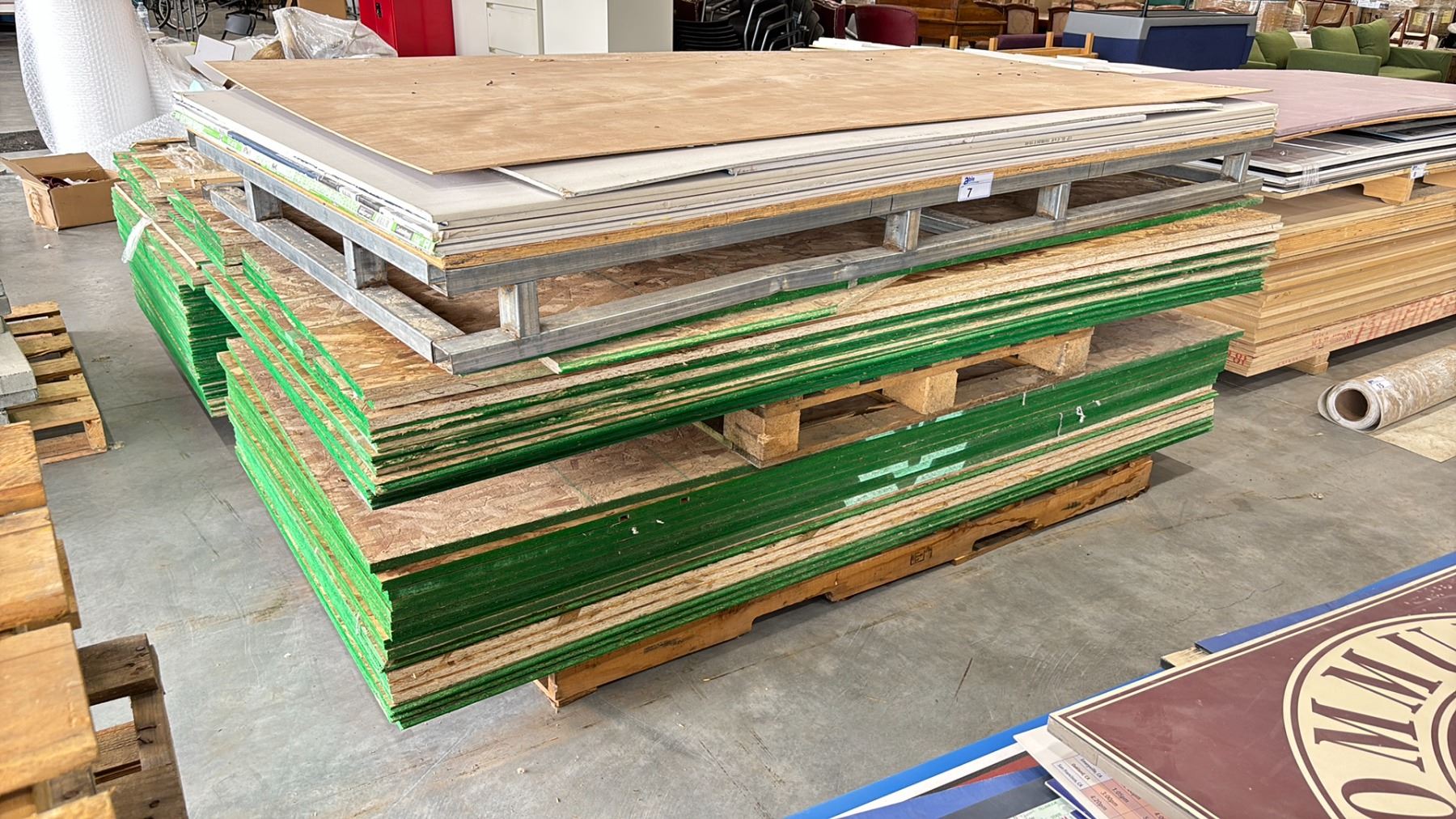 2 PALLETS OF 8'L X 4'W PLYWOOD PANELS & PLYWOOD OFFCUTS & PALLET OF 8'L X 4'W DRYWALL PANELS