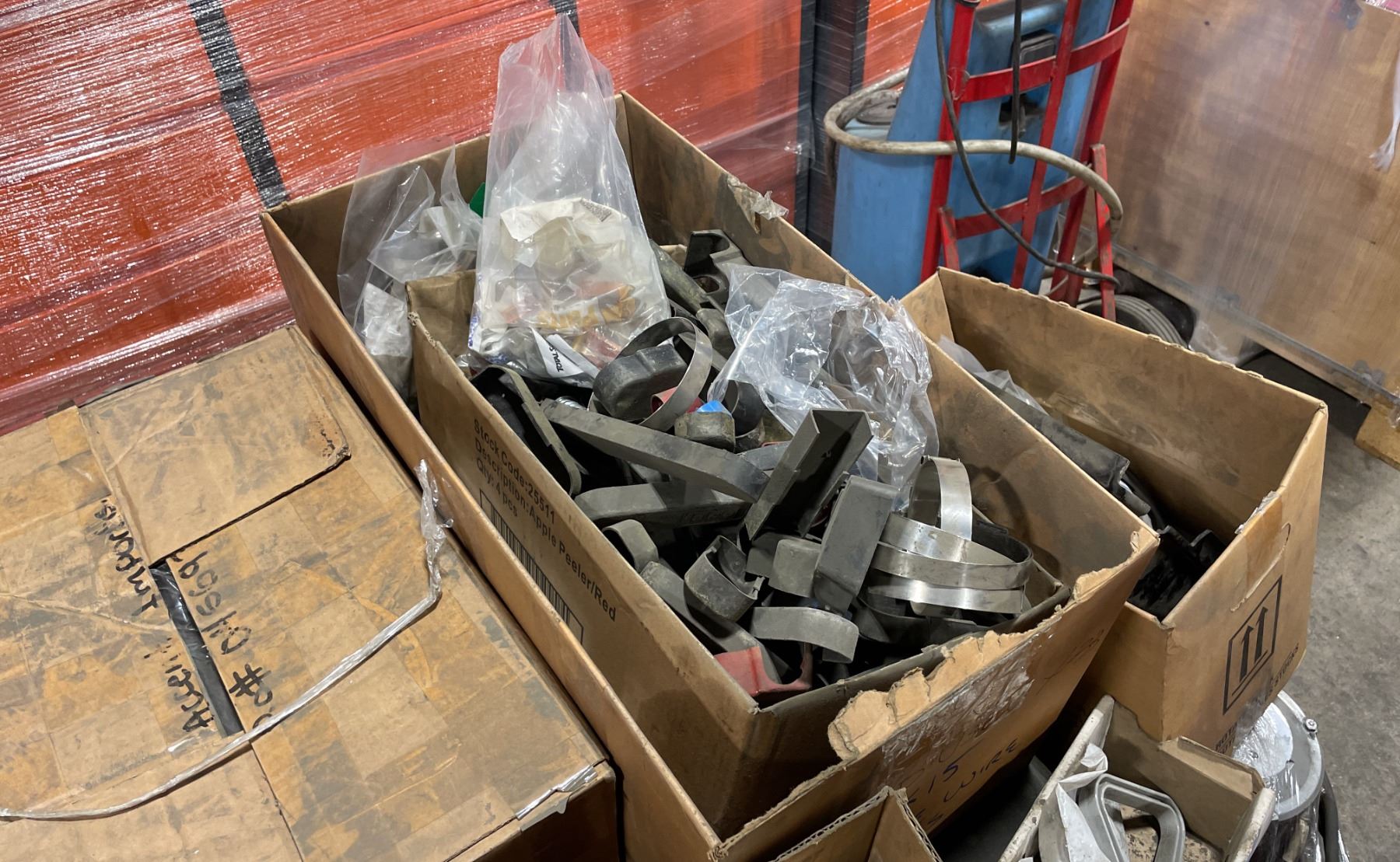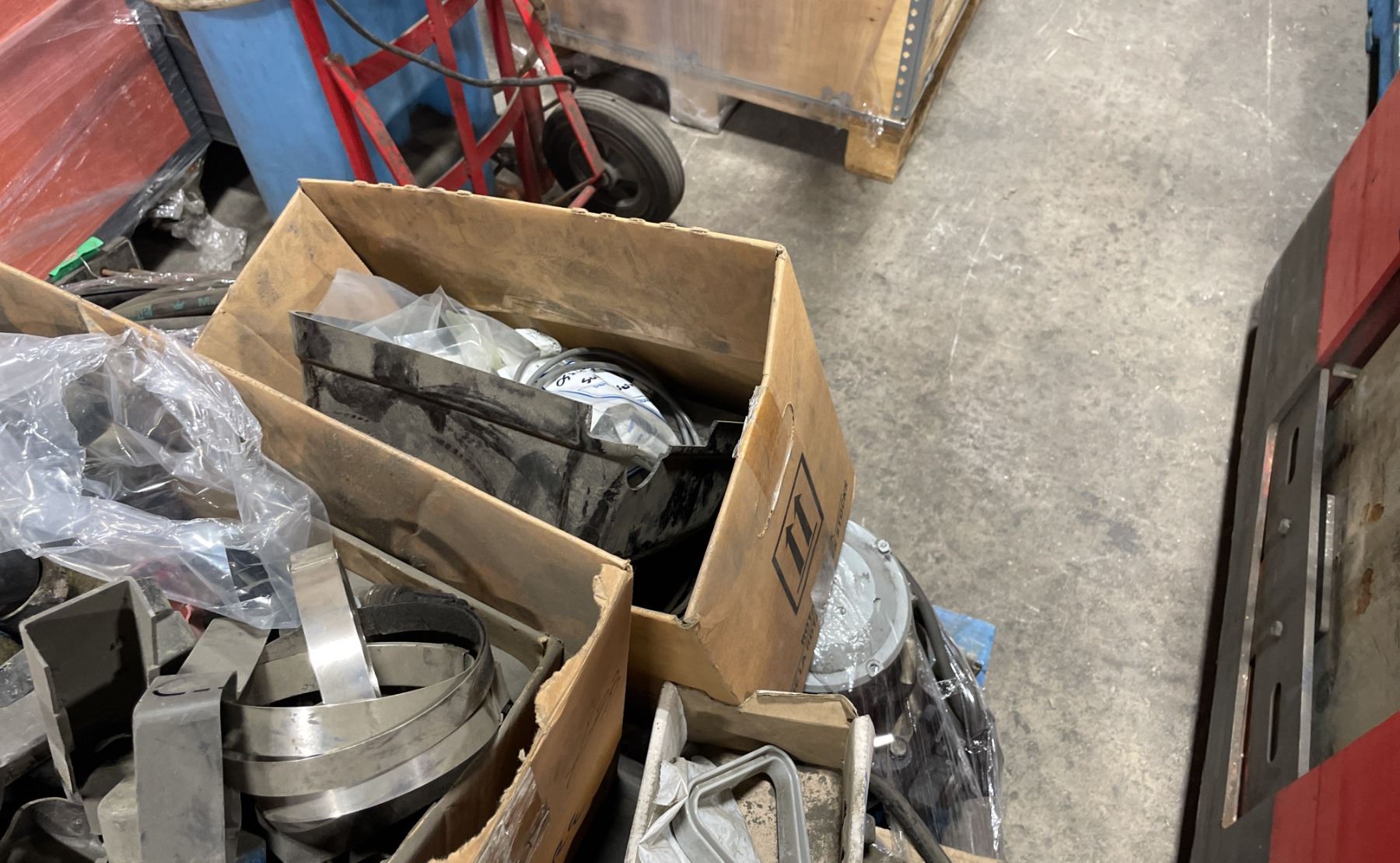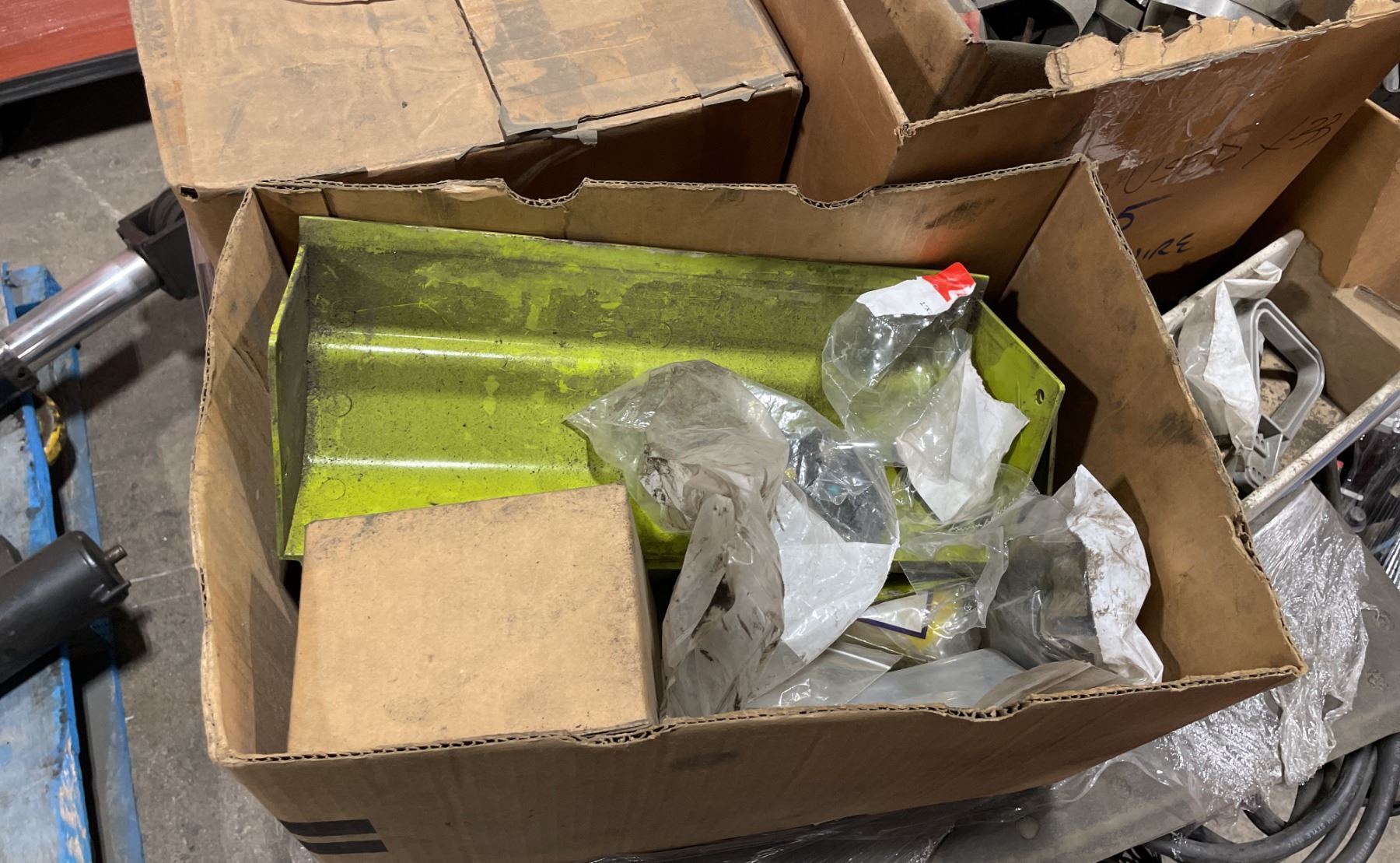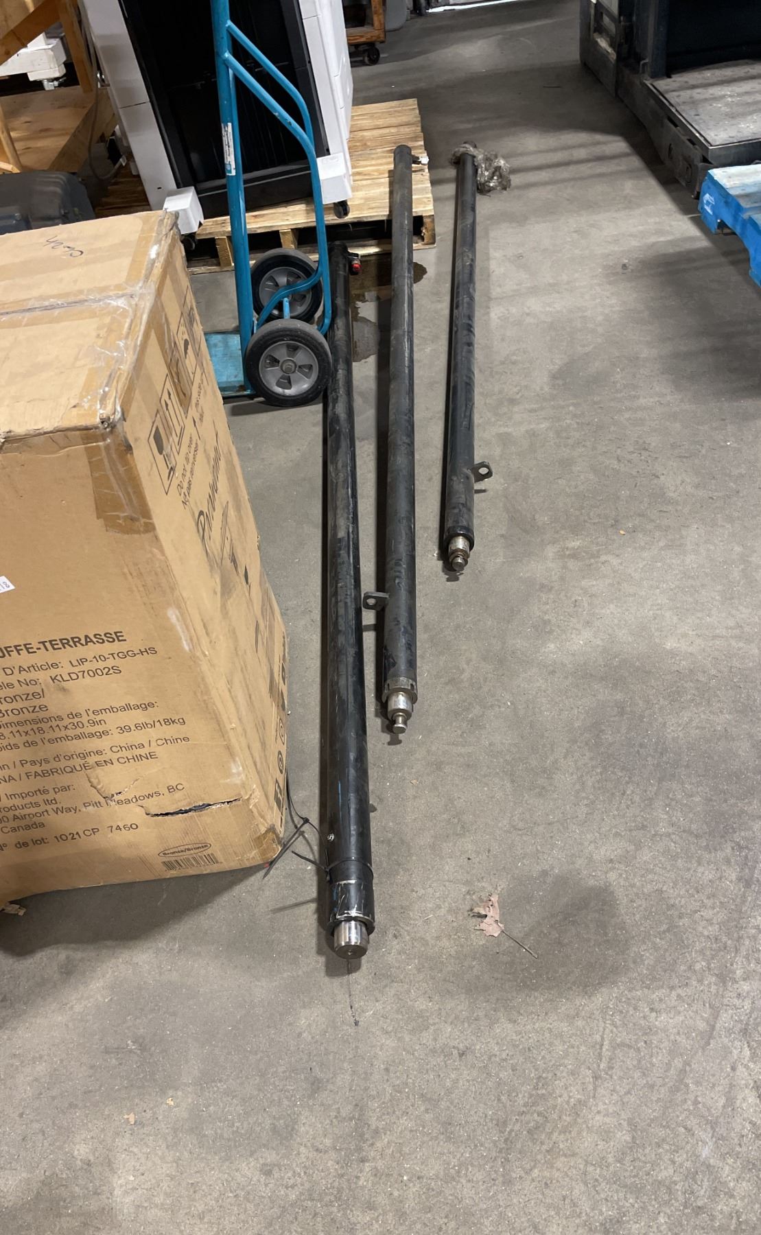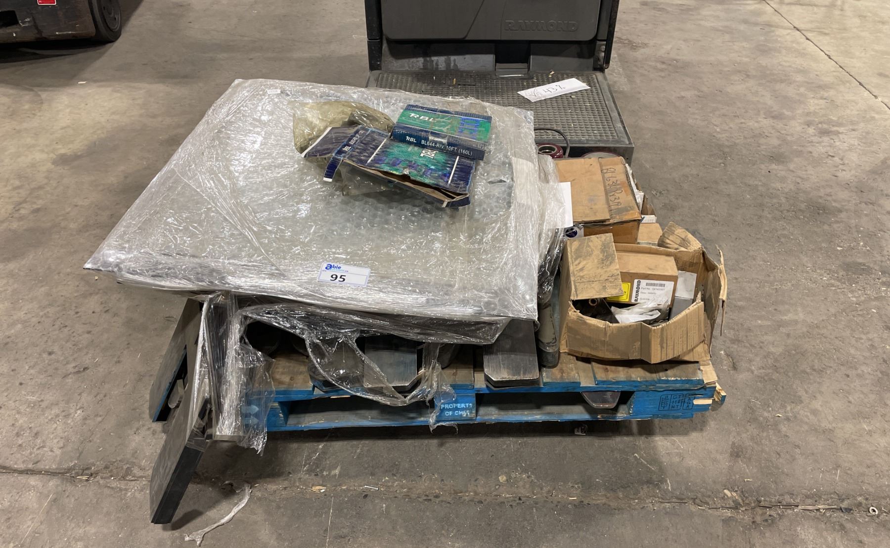 2 PALLETS OF ASSORTED INDUSTRIAL ORDER PICKER / REACH TRUCK PARTS & PALLET OF HEAVY DUTY MAST HYDRAULIC CYLINDERS