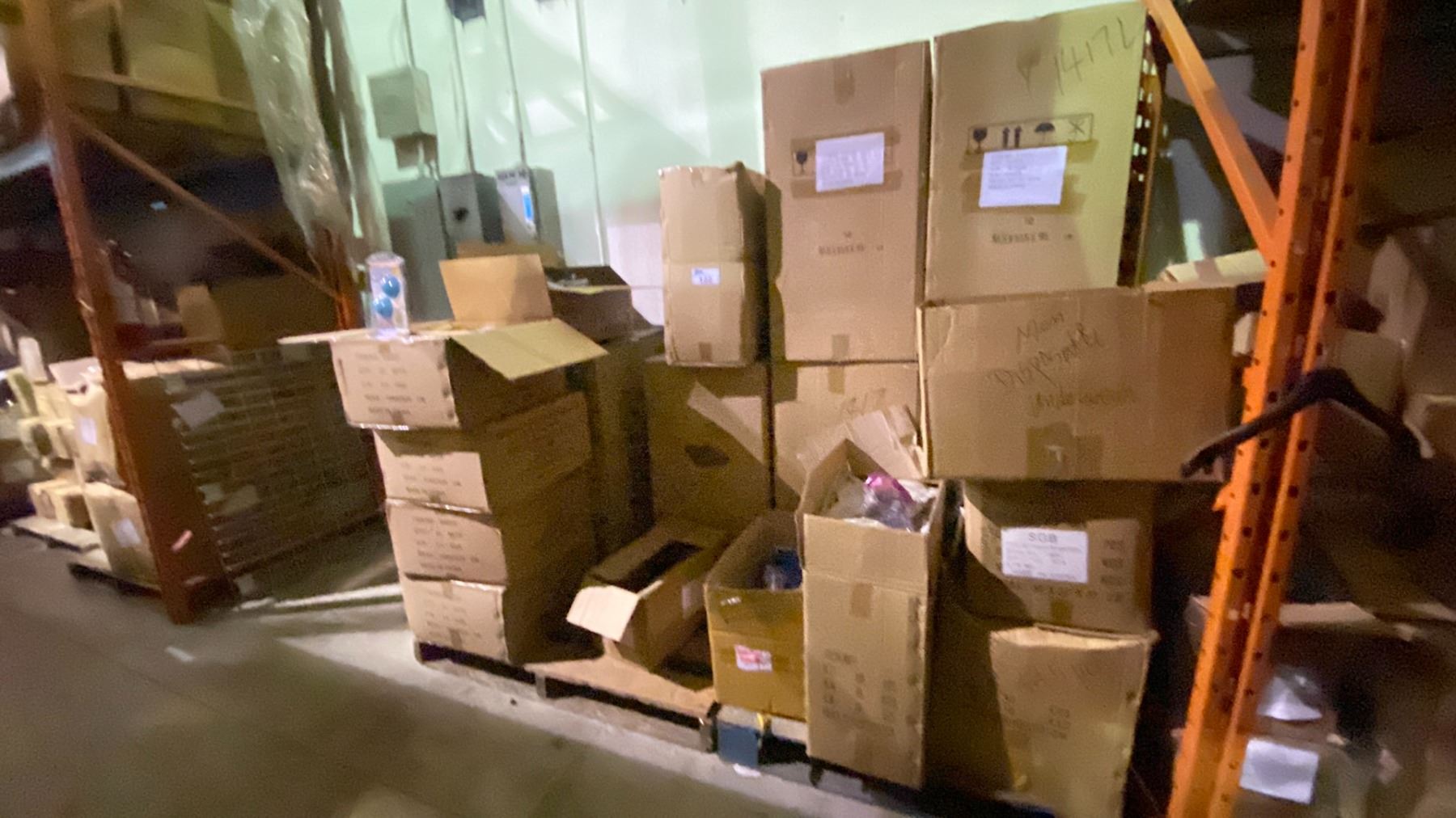 2 PALLETS OF DRYER BALLS, DISPOSABLE UNDERWEAR, COSMETIC BAGS, ELBOW SLEEVE PROTECTORS & MORE