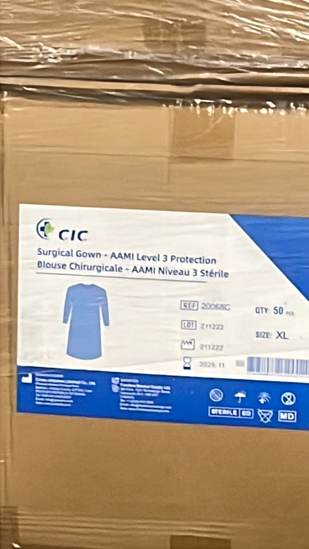 2 PALLETS OF SURGICAL GOWNS (LEVEL 3 PROTECTION) -APPROX.24 BOXES PER PALLET/50 PCS.PER BOX