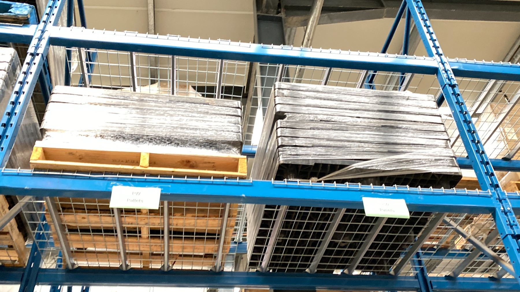 2 PALLETS ULINE PLASTIC PALLETS APPROX 15