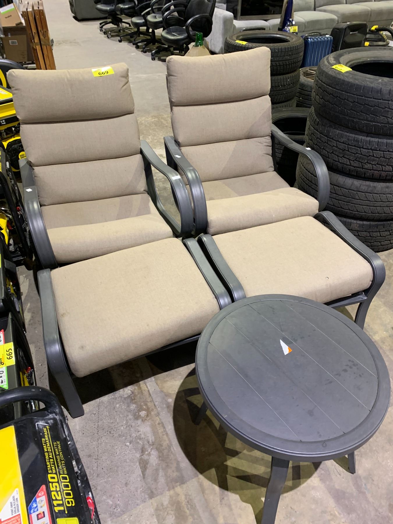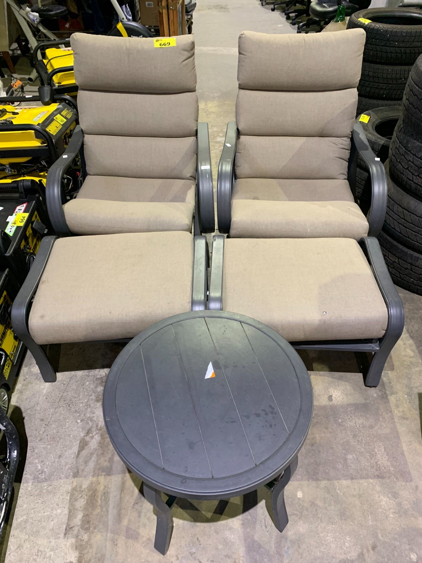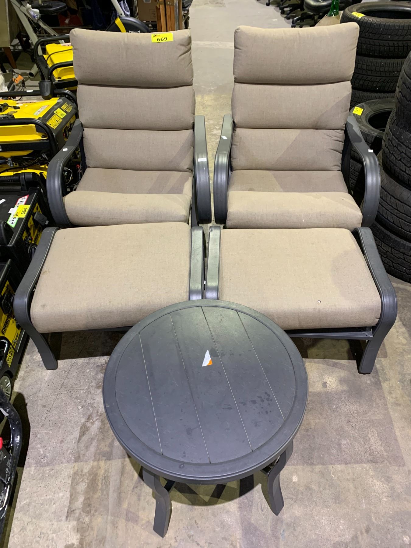 2 PATIO LOUNGE CHAIRS WITH TABLE
