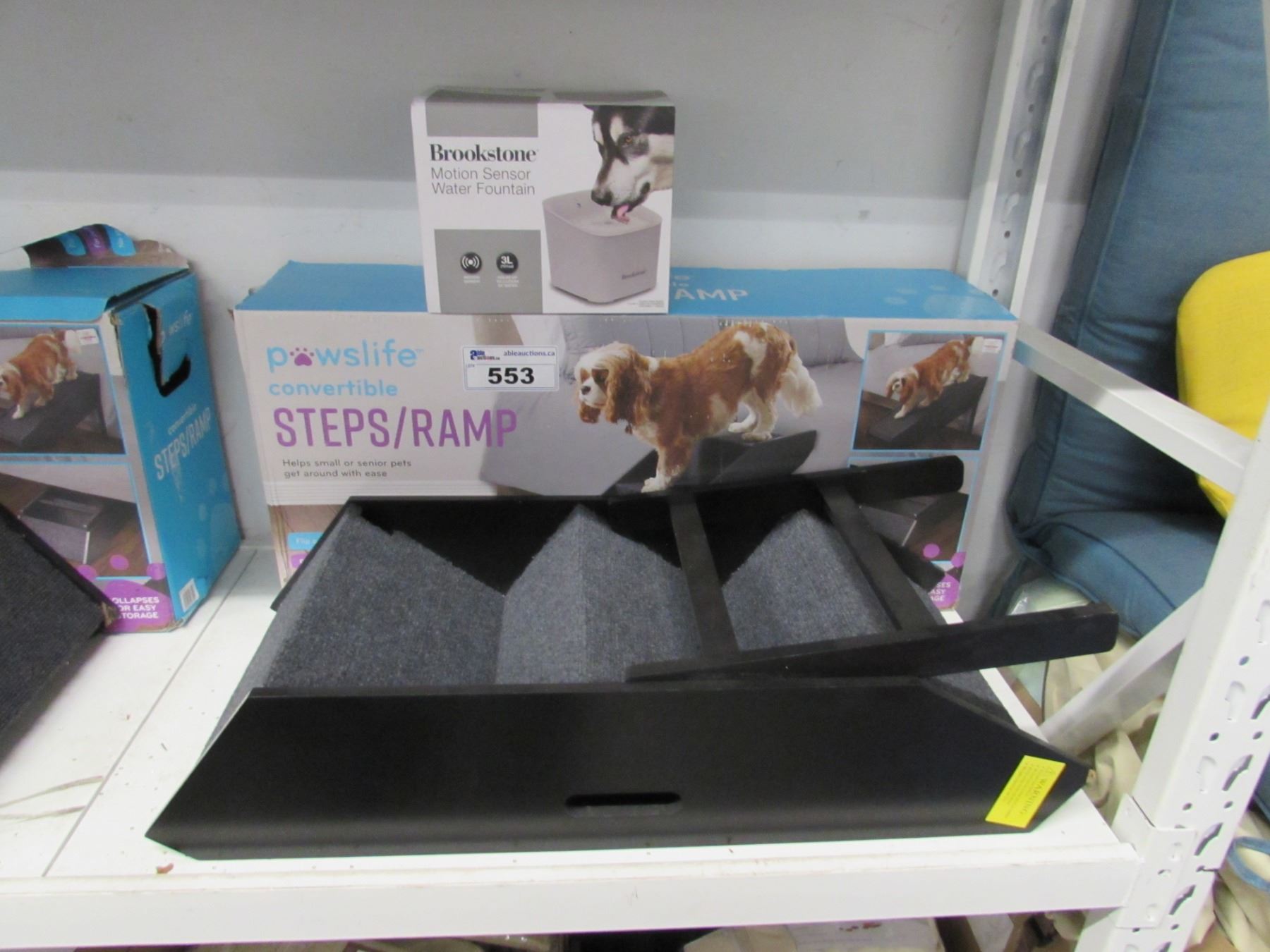 2 PAWS LIFE STEP RAMPS , MOTION SENSOR WATER FOUNTAIN