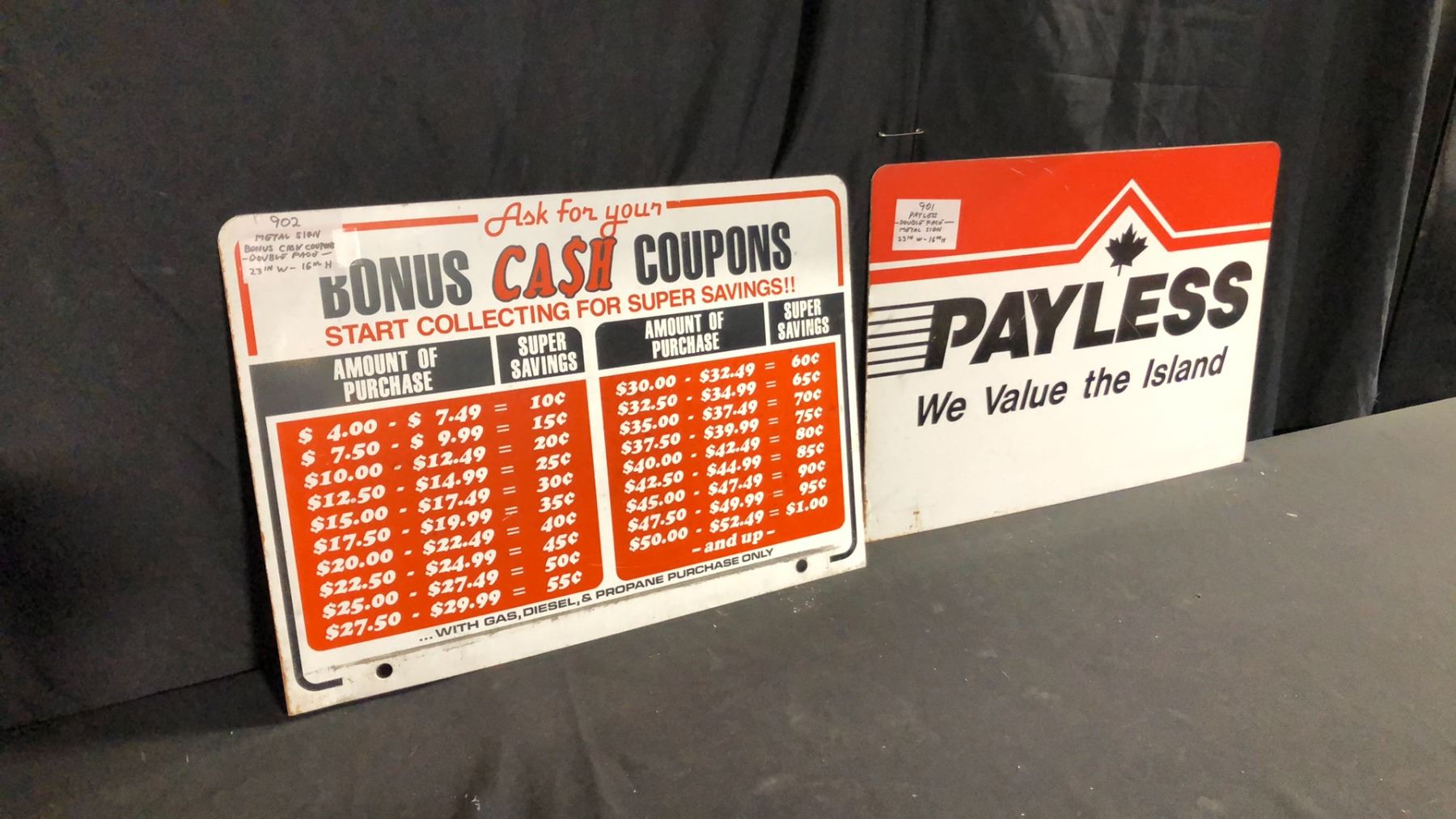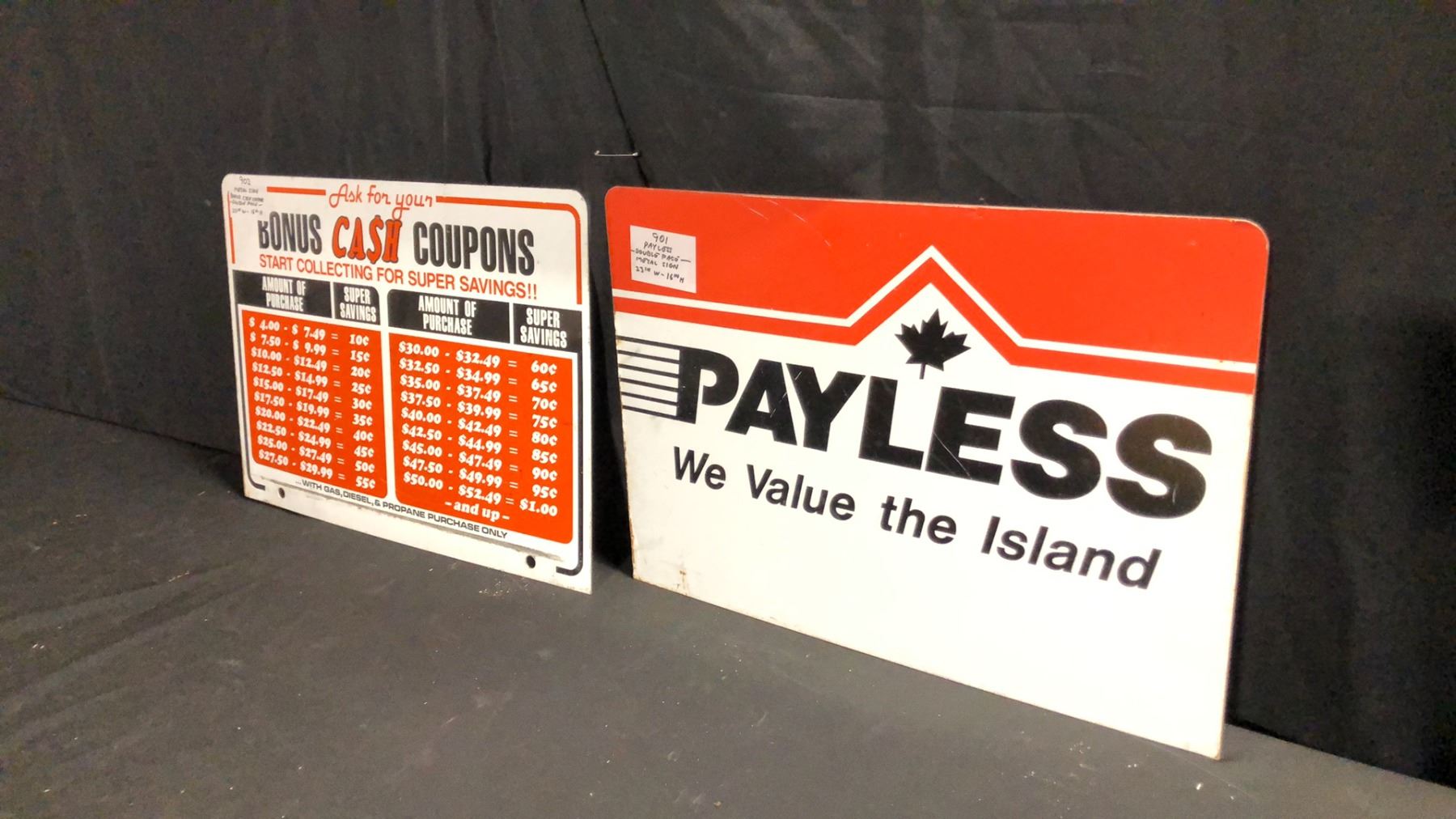 2 PAYLESS METAL 23" X 16" DOUBLE SIDED SIGNS