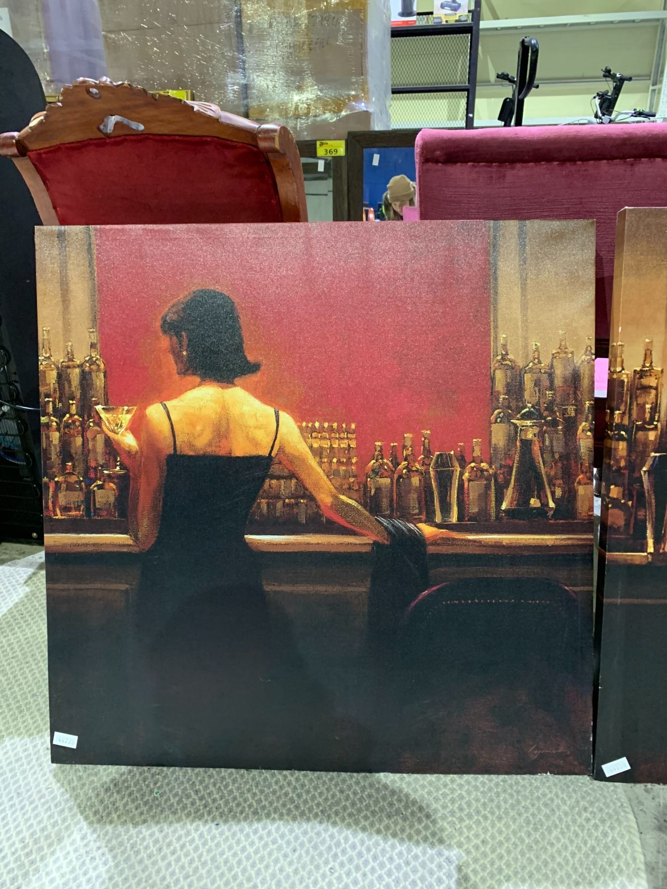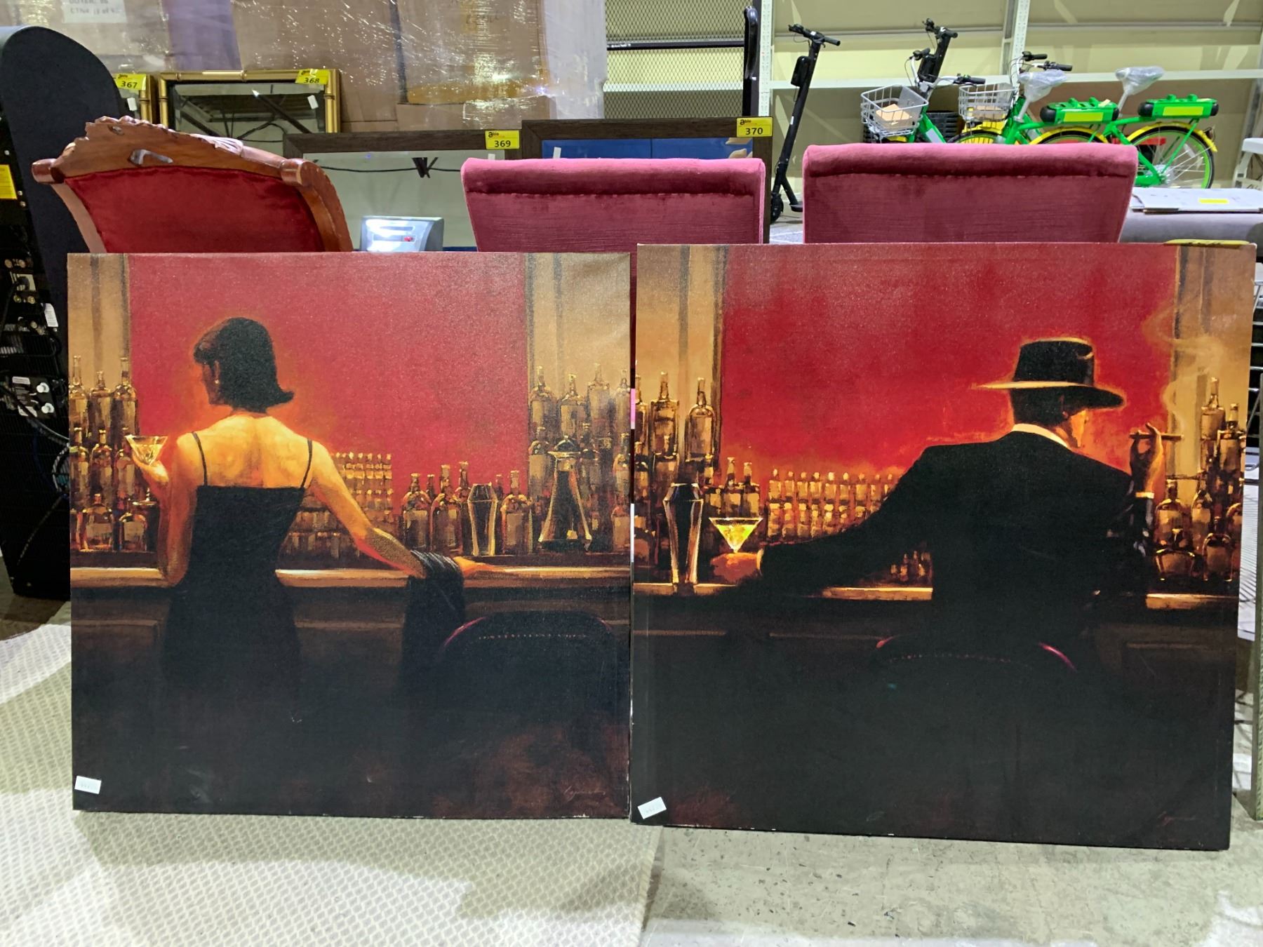 2-PC CANVAS ART OF MAN & WOMAN AT THE BAR
