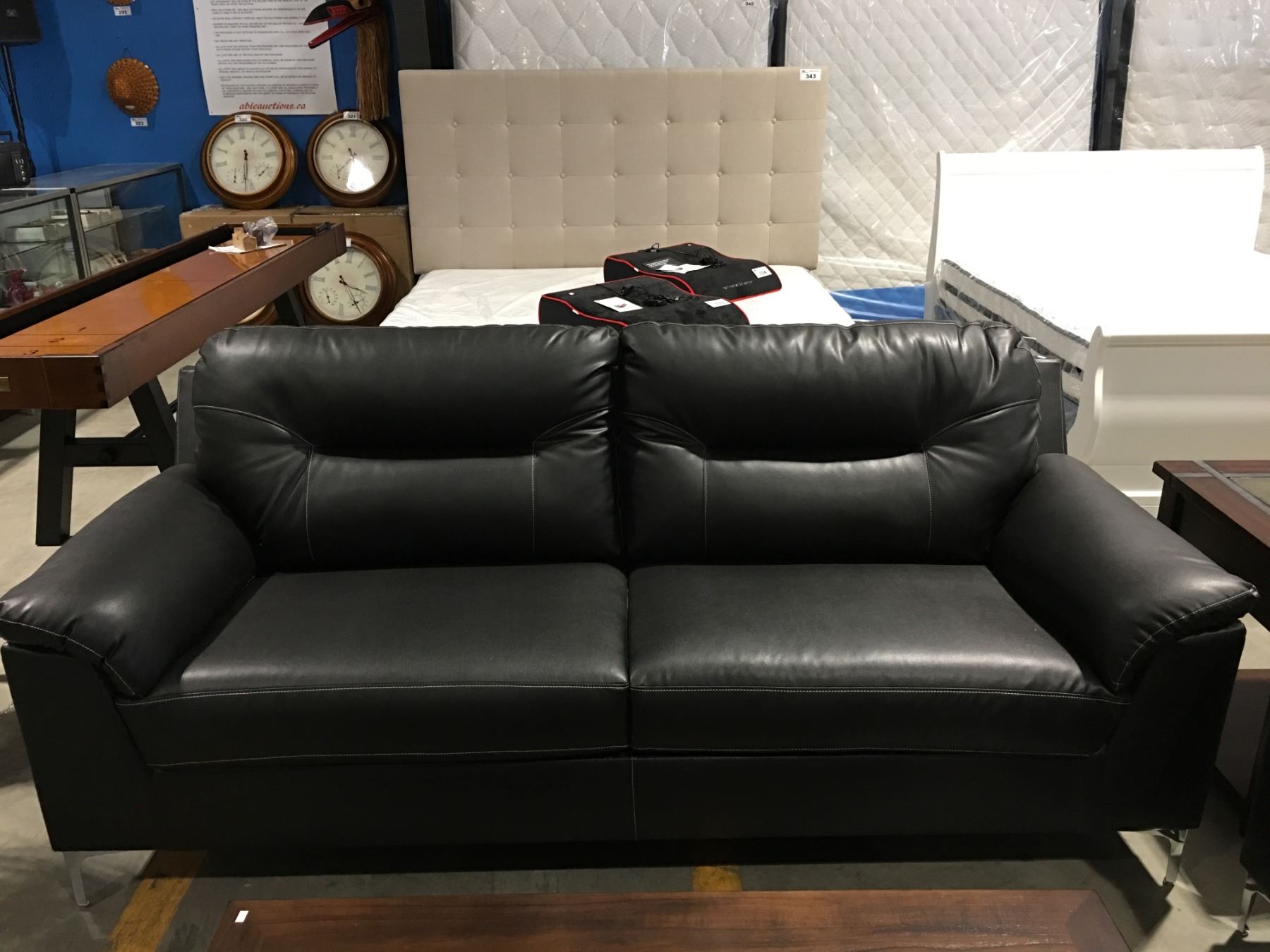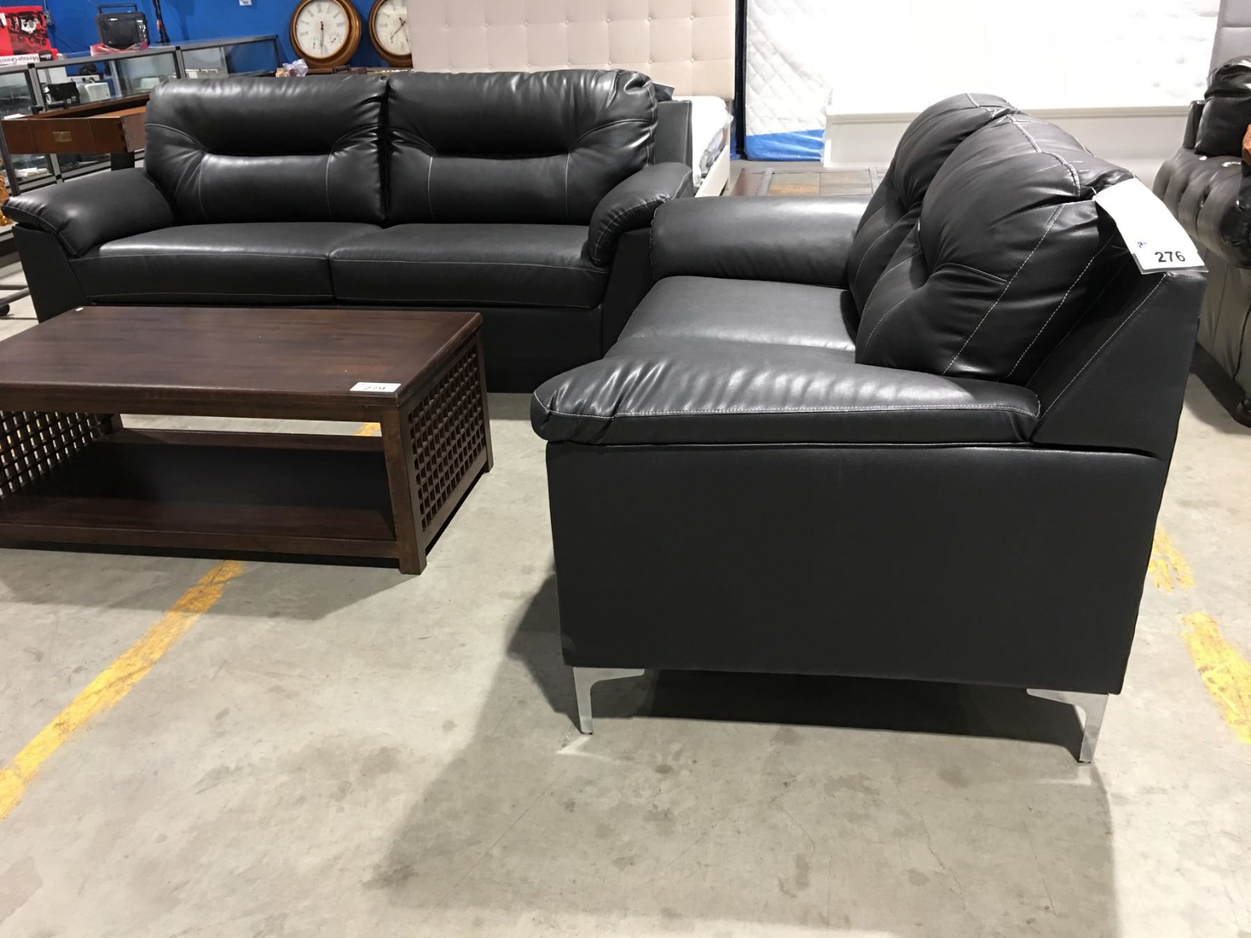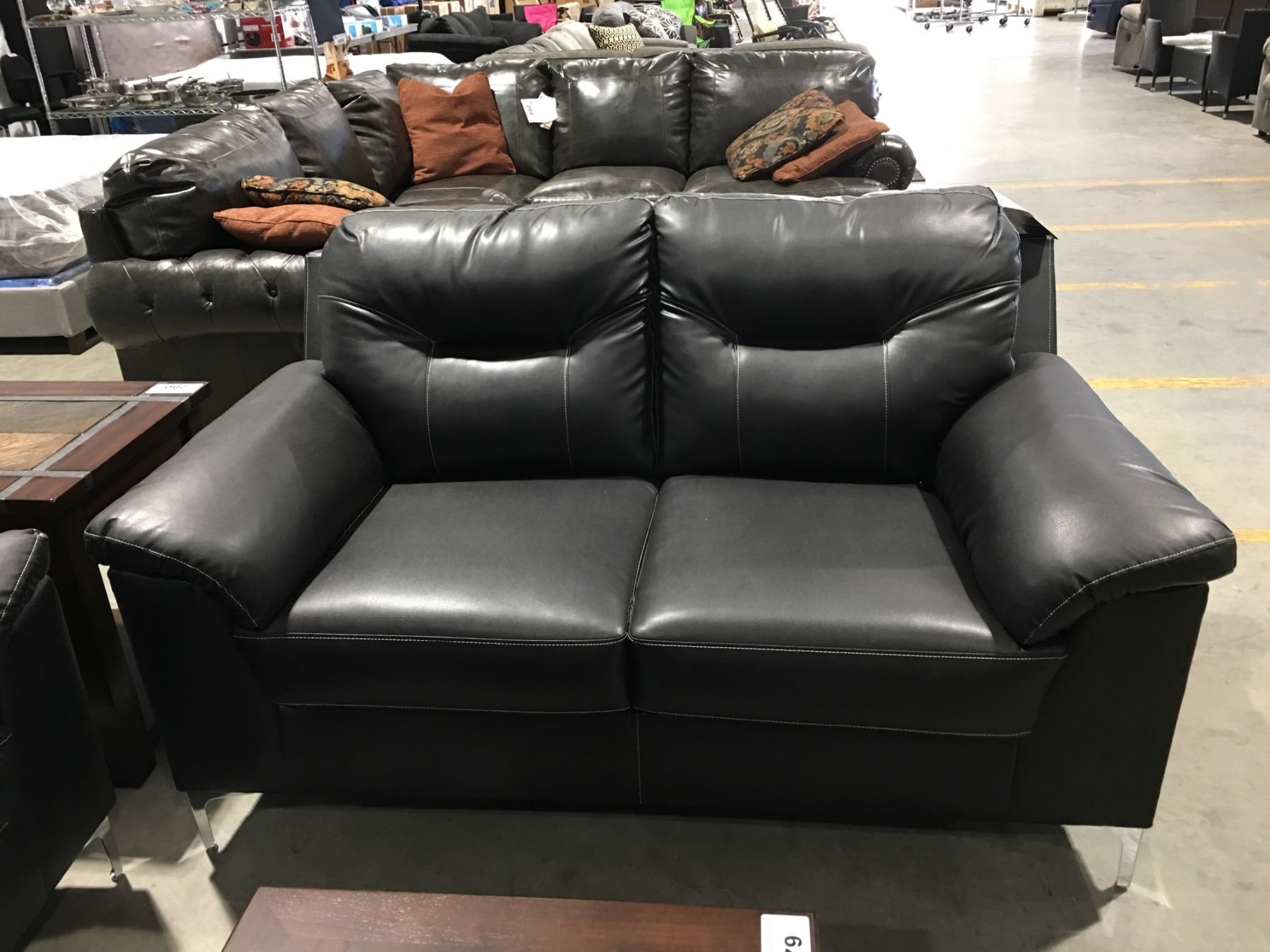 2 PCE CONTEMPORARY BLACK LEATHER SOFA & LOVE SEAT SET