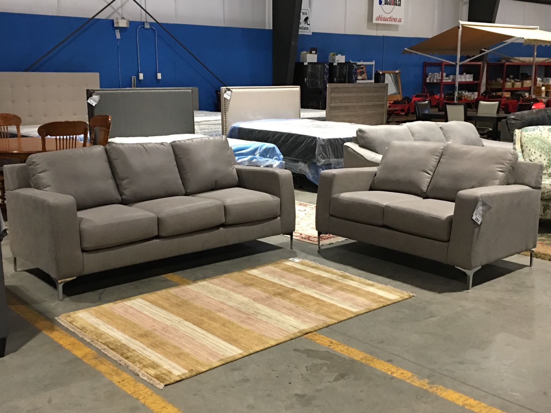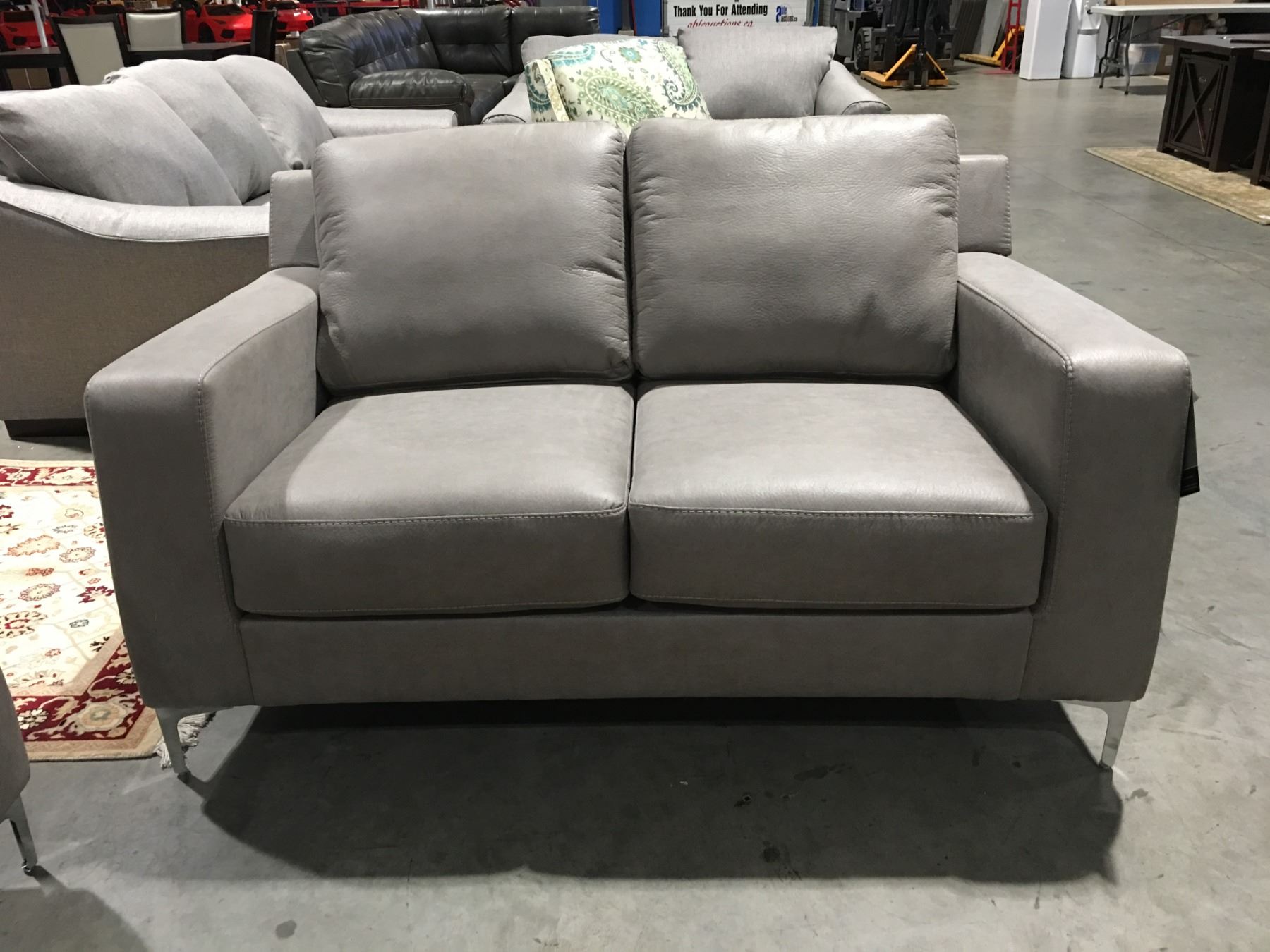2 PCE CONTEMPORARY LIGHT GREY UPHOLSTERED SOFA & LOVESEAT SET WITH CHROME LEGS