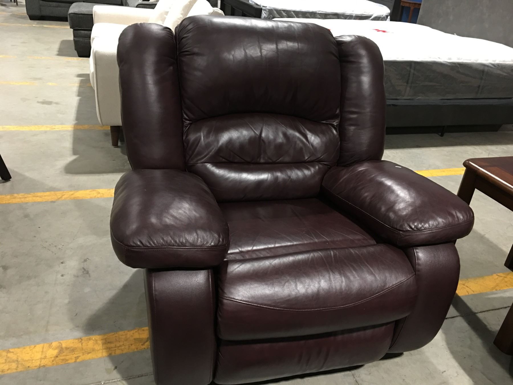 2 PCE MAROON LEATHER RECLINING SOFA & CHAIR SET
