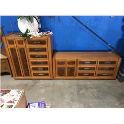 2 PCE OAK BEDROOM SET - DRESSER & HIGHBOY CHEST