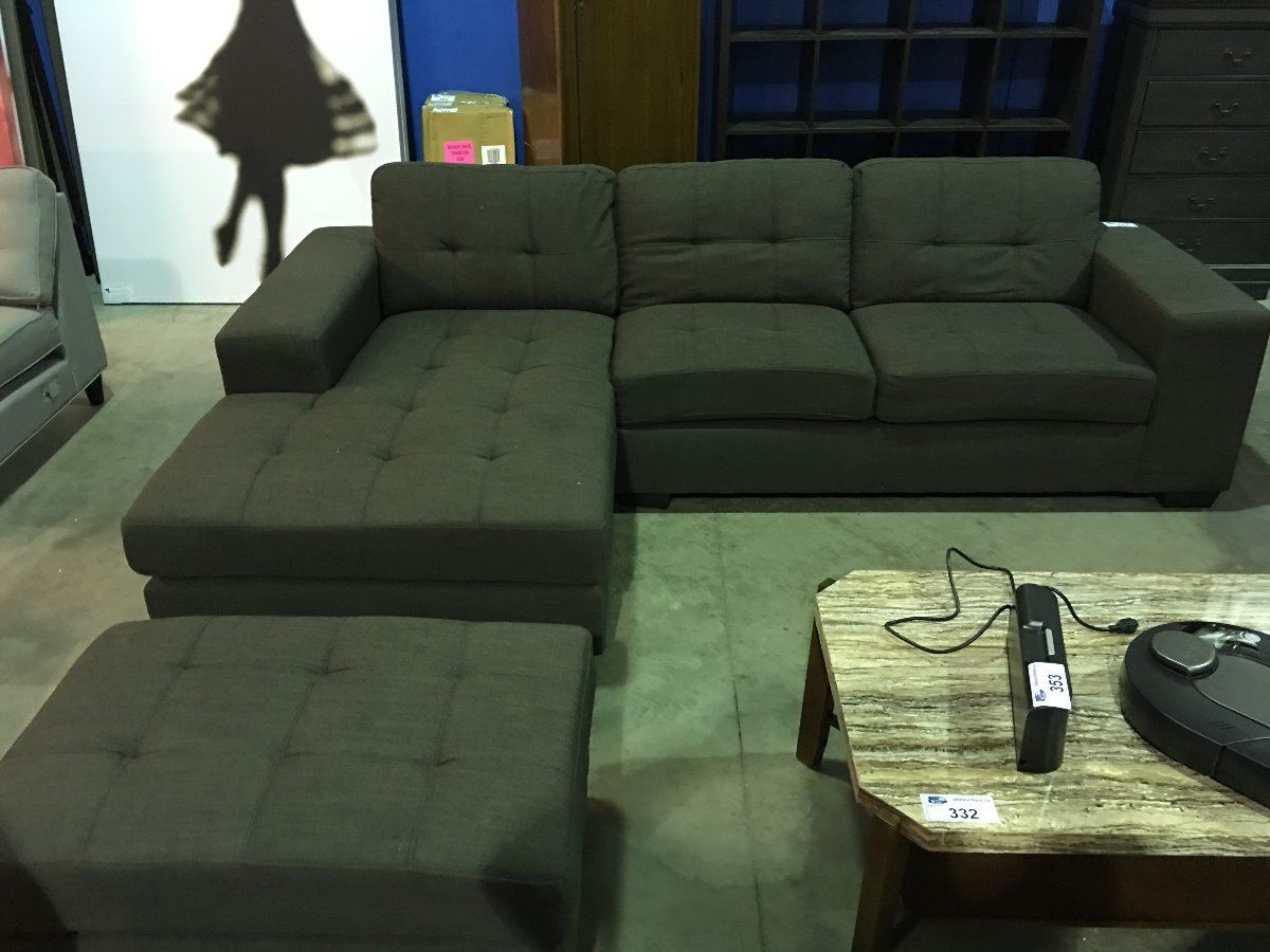 2 PIECE GREYISH GREEN UPHOLSTERED SECTIONAL SOFA WITH FOOT STOOL