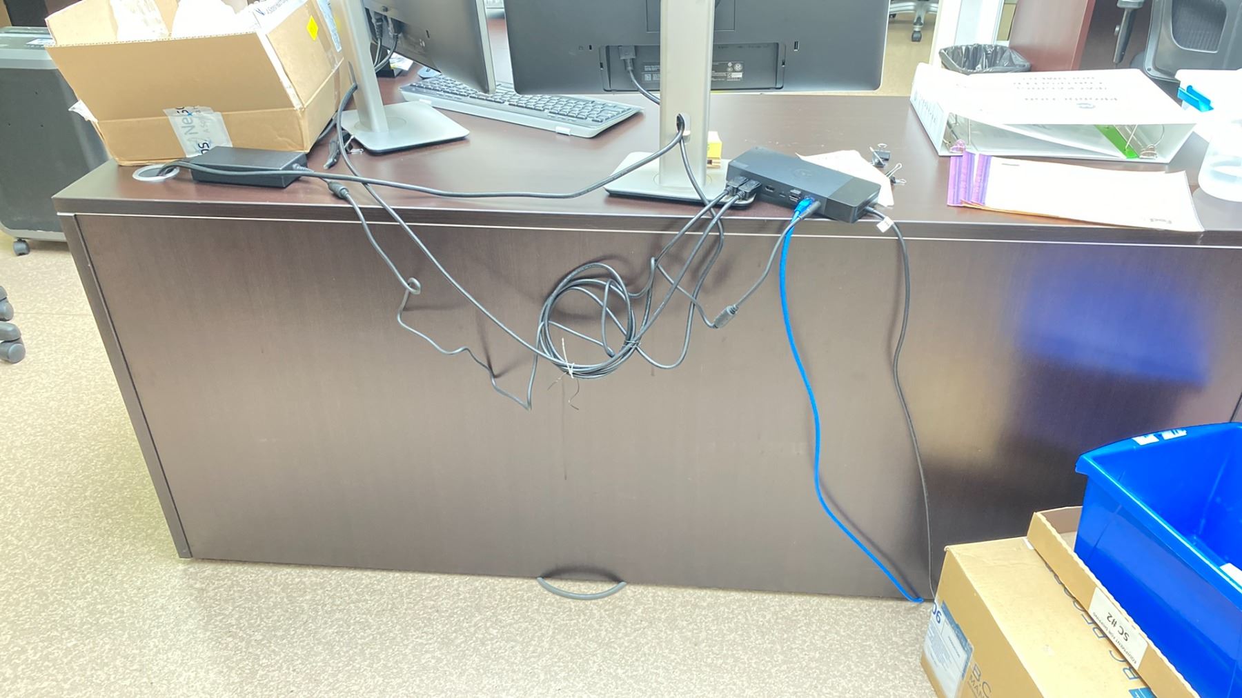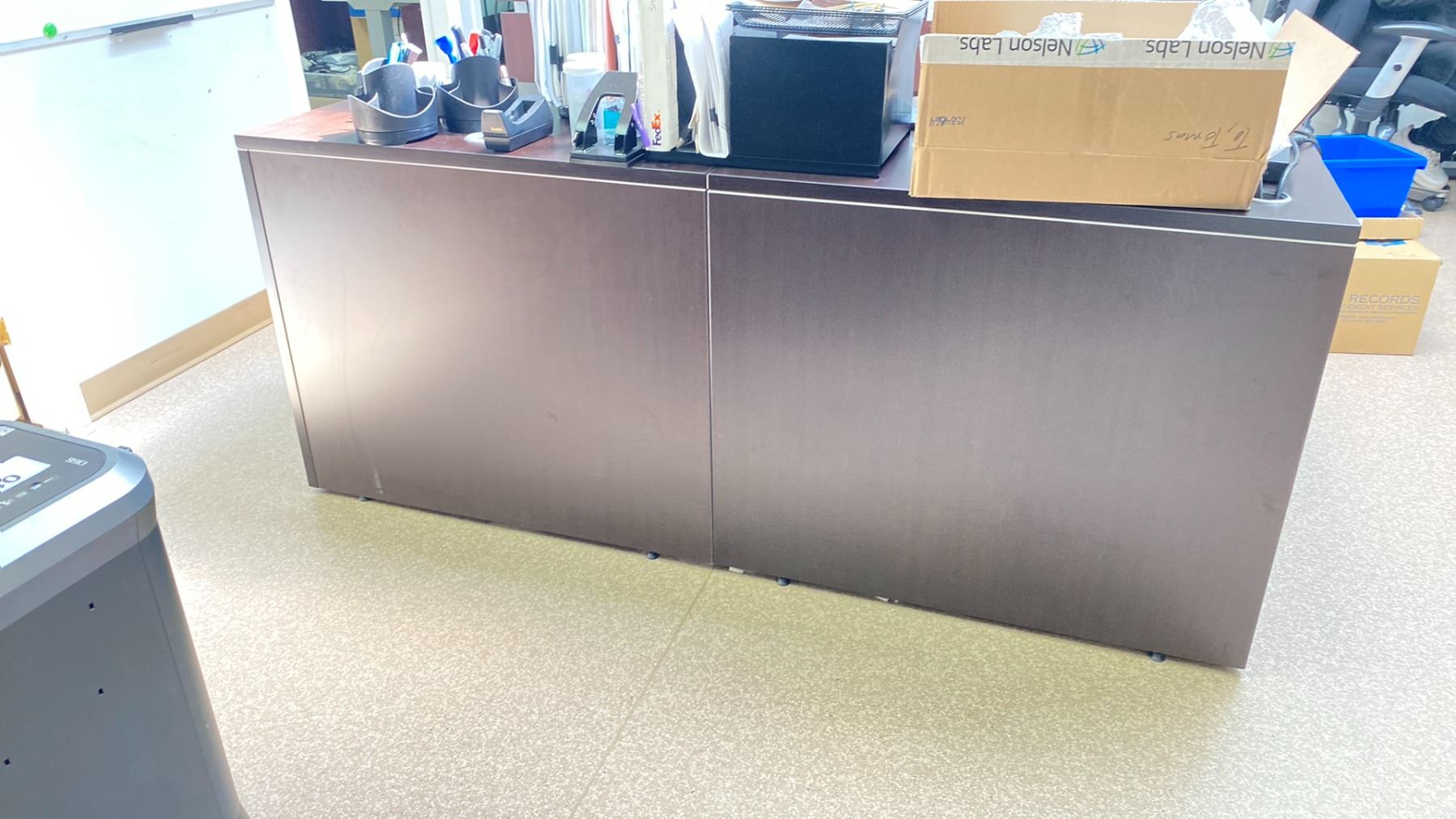 2 PIECE L SHAPED DESK APPROX 6' X 6' WITH 2 DRAWER FILE CABINET (CONTENTS NOT INCLUDED)