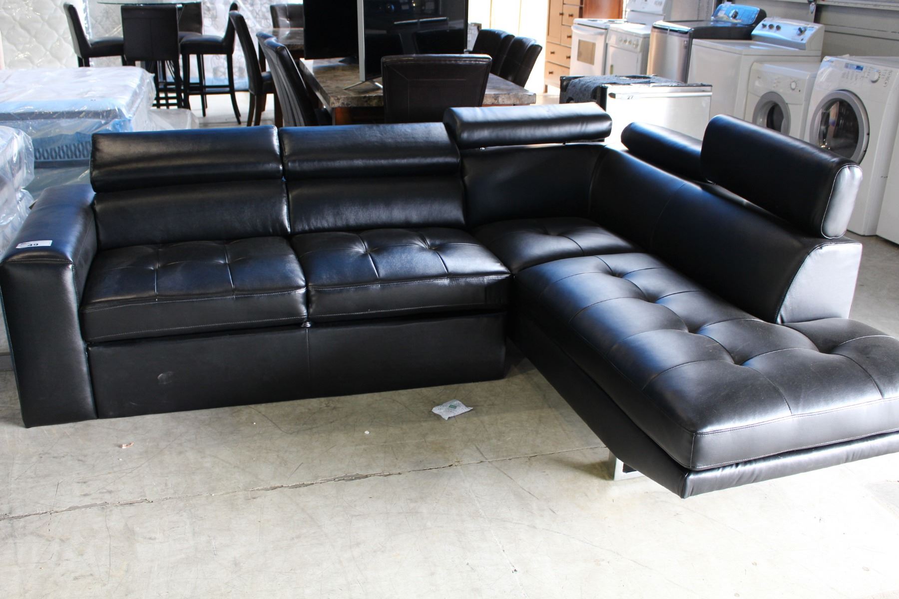 2 PIECE MISMATCHED BLACK LEATHER SECTIONAL