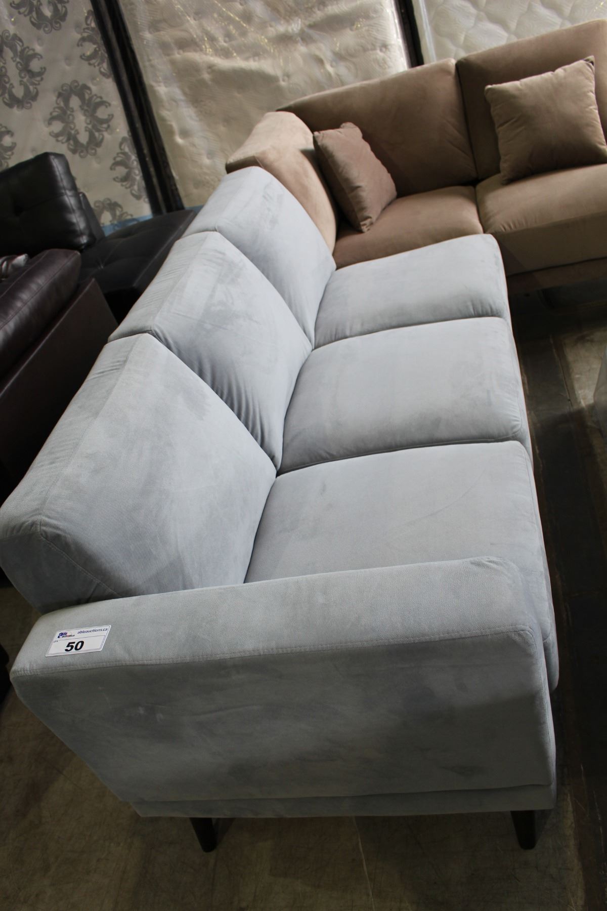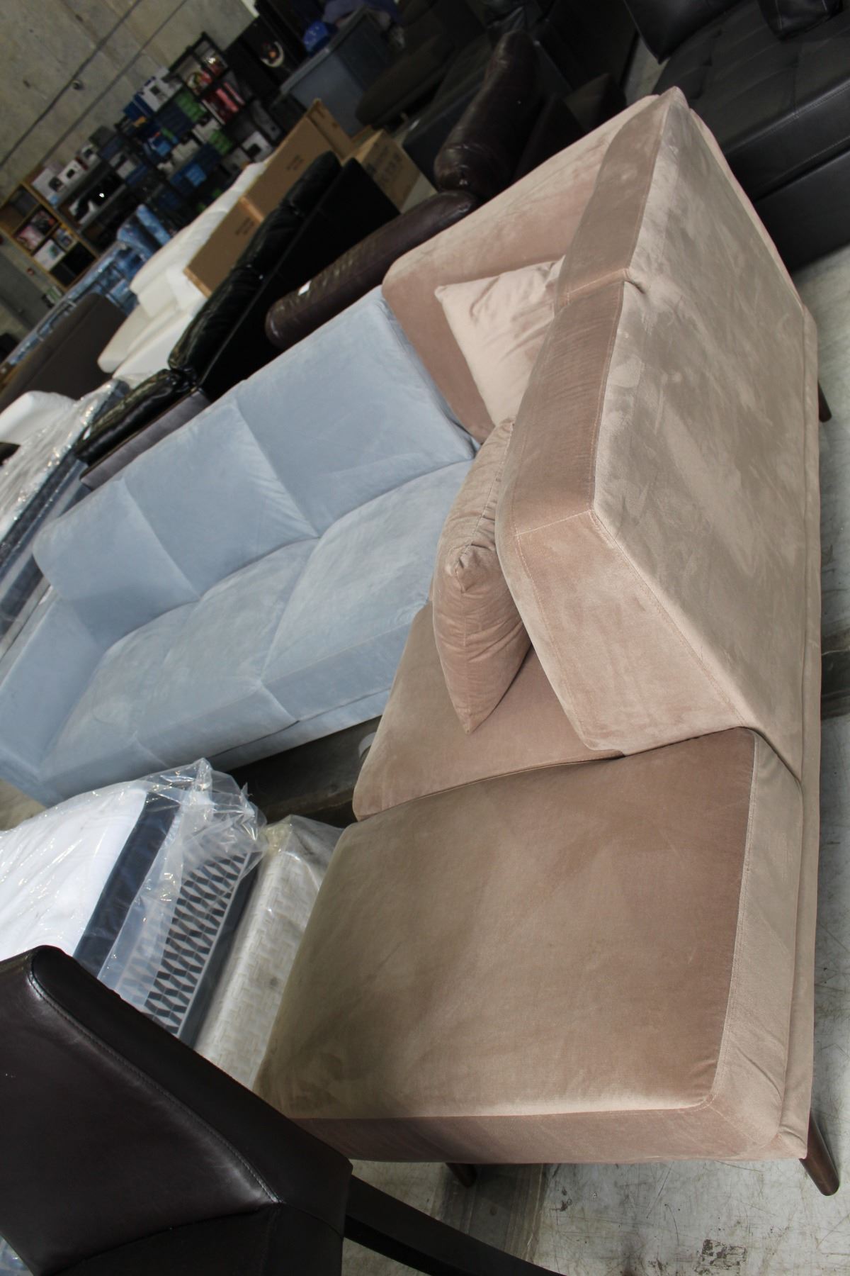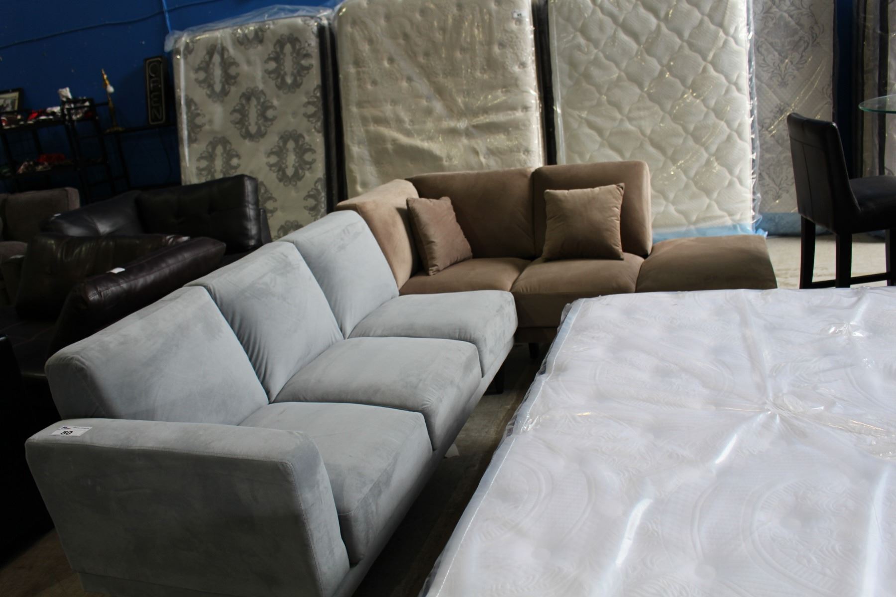 2 PIECE MISMATCHED 'COLOUR BLIND SPECIAL' BROWN/BLUE SECTIONAL