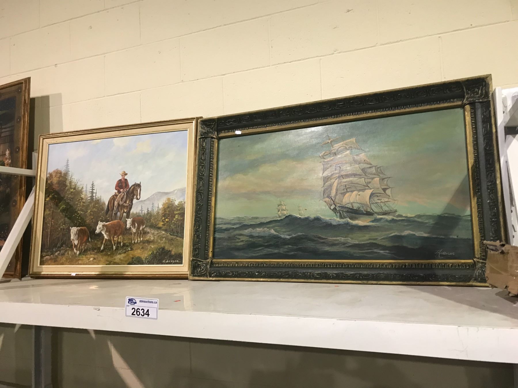 2 PIECE OF ARTWORK WESTERN, AND SHIP