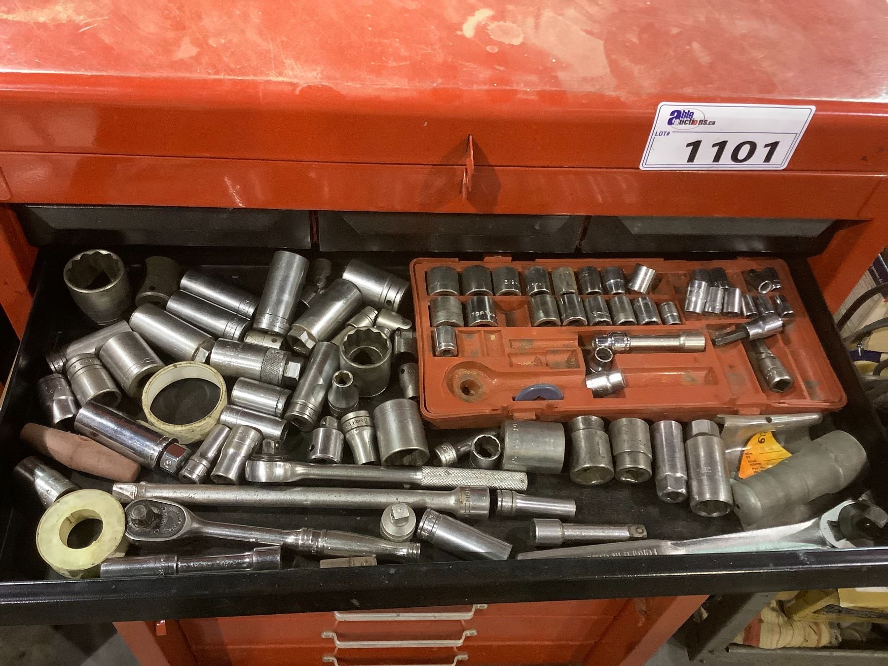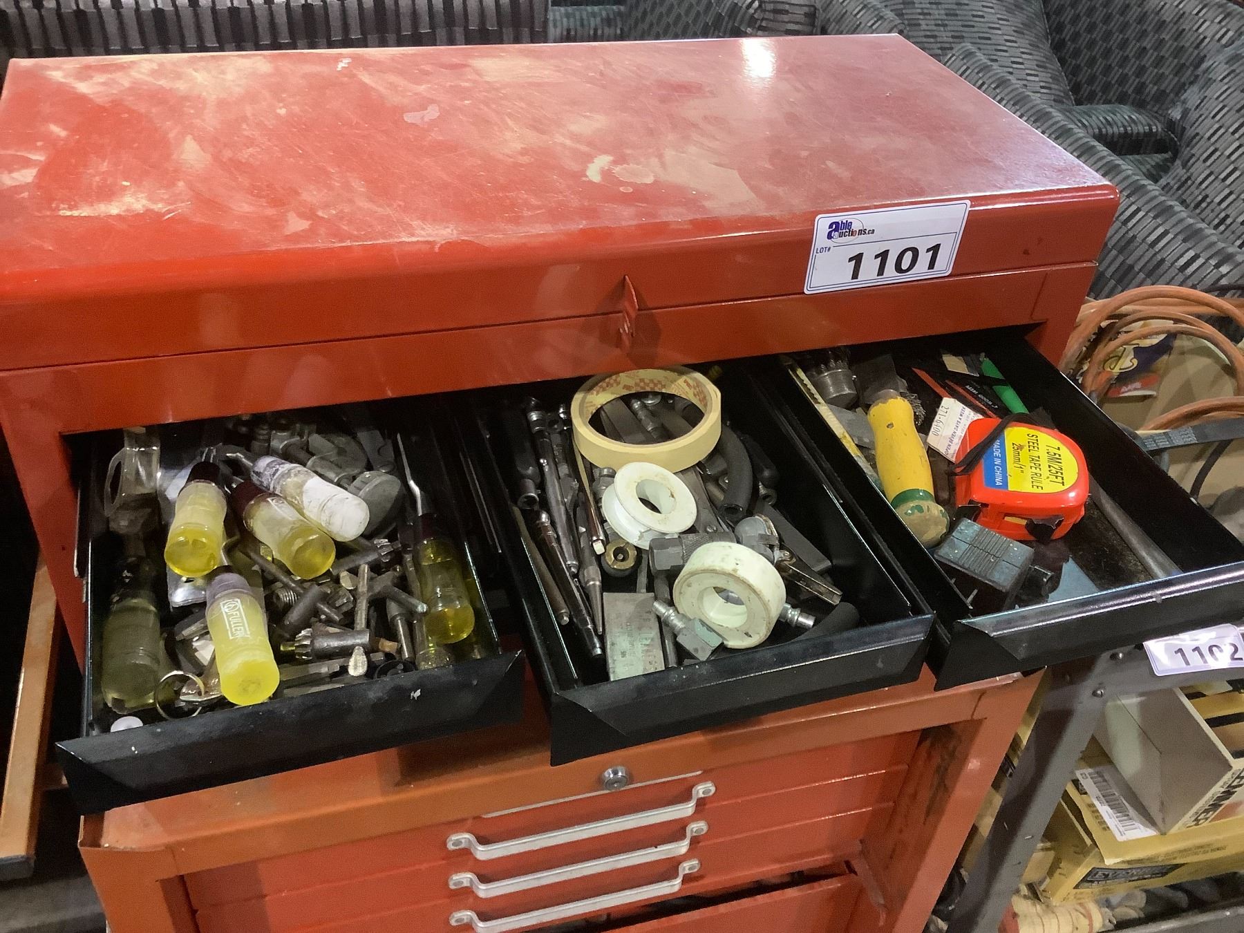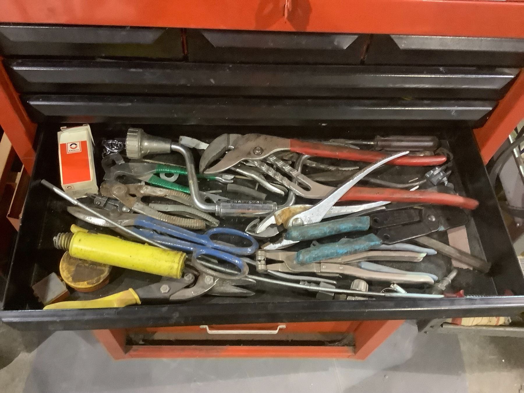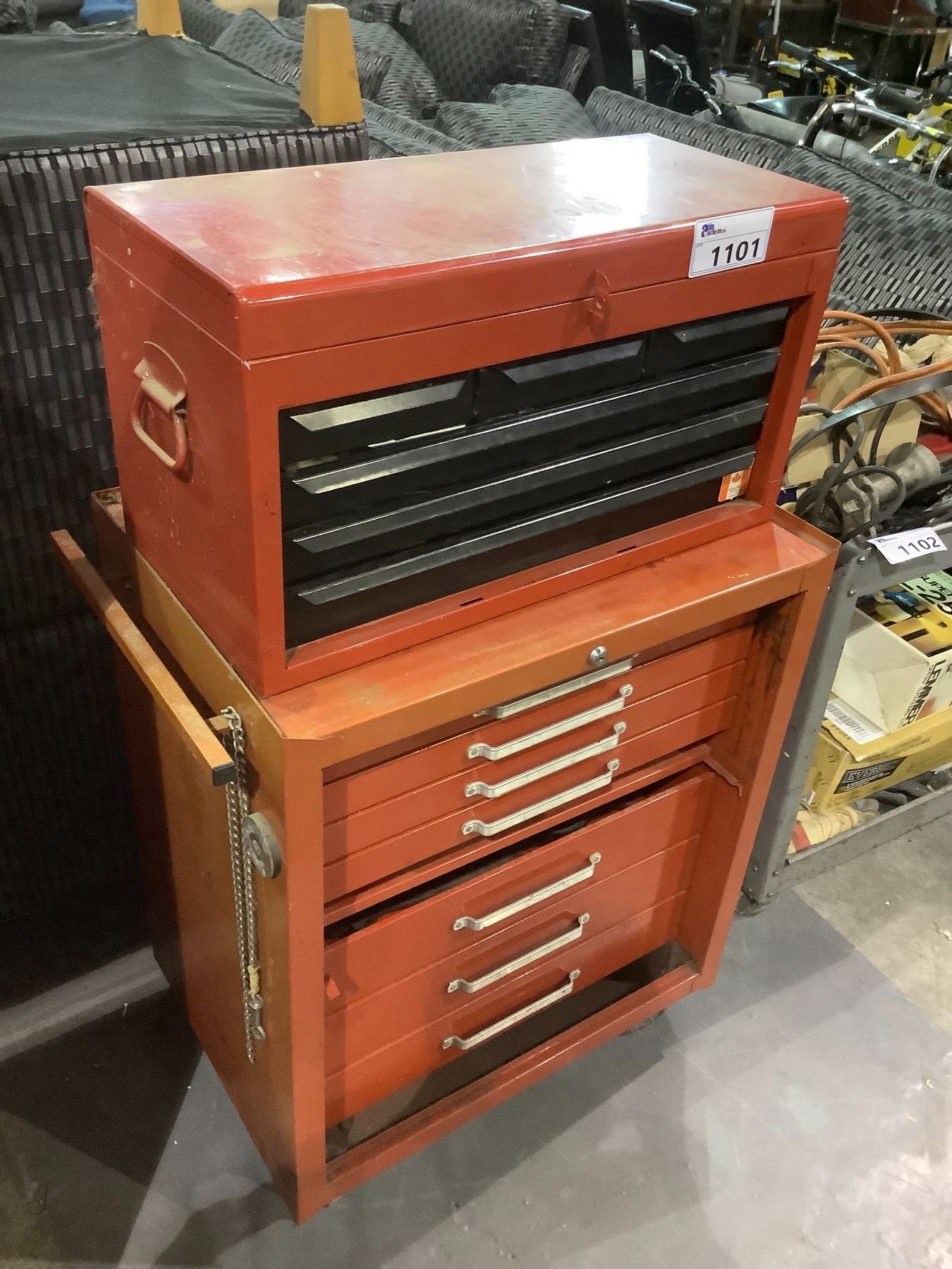 2 PIECE RED ROLLING TOOLBOX WITH CONTENTS 27" X 19" X 48.75"