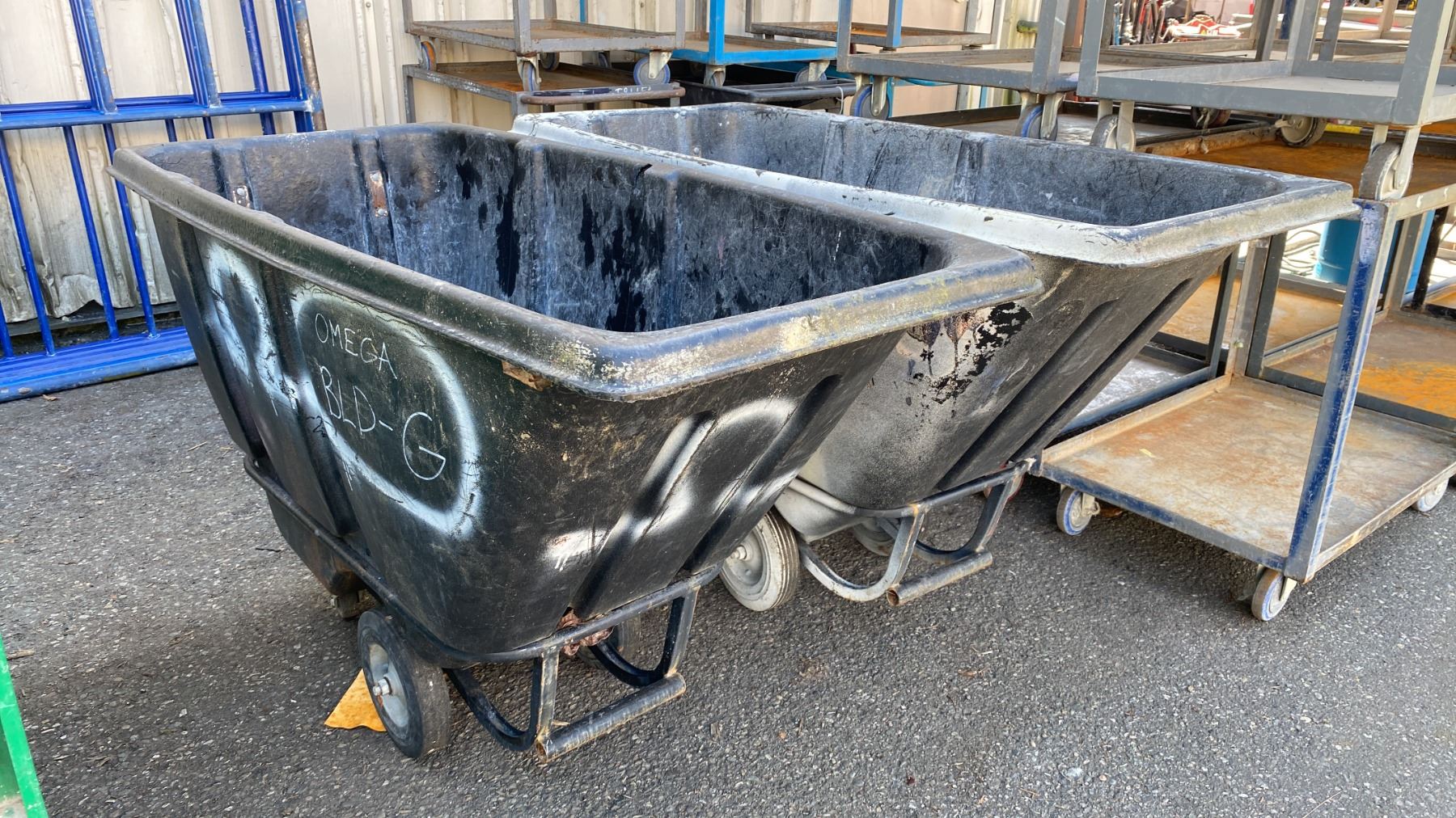 2 PLASTIC INDUSTRIAL MOBILE DUMPING GARBAGE BIN